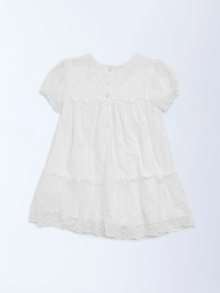 HOP Baby White Lace Detailed Tiered Dress