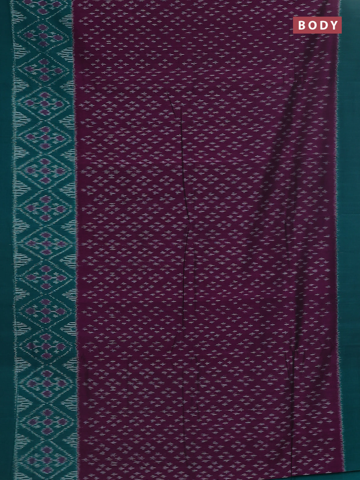 Ikat cotton saree purple and teal green with allover ikat butta weaves and simple border