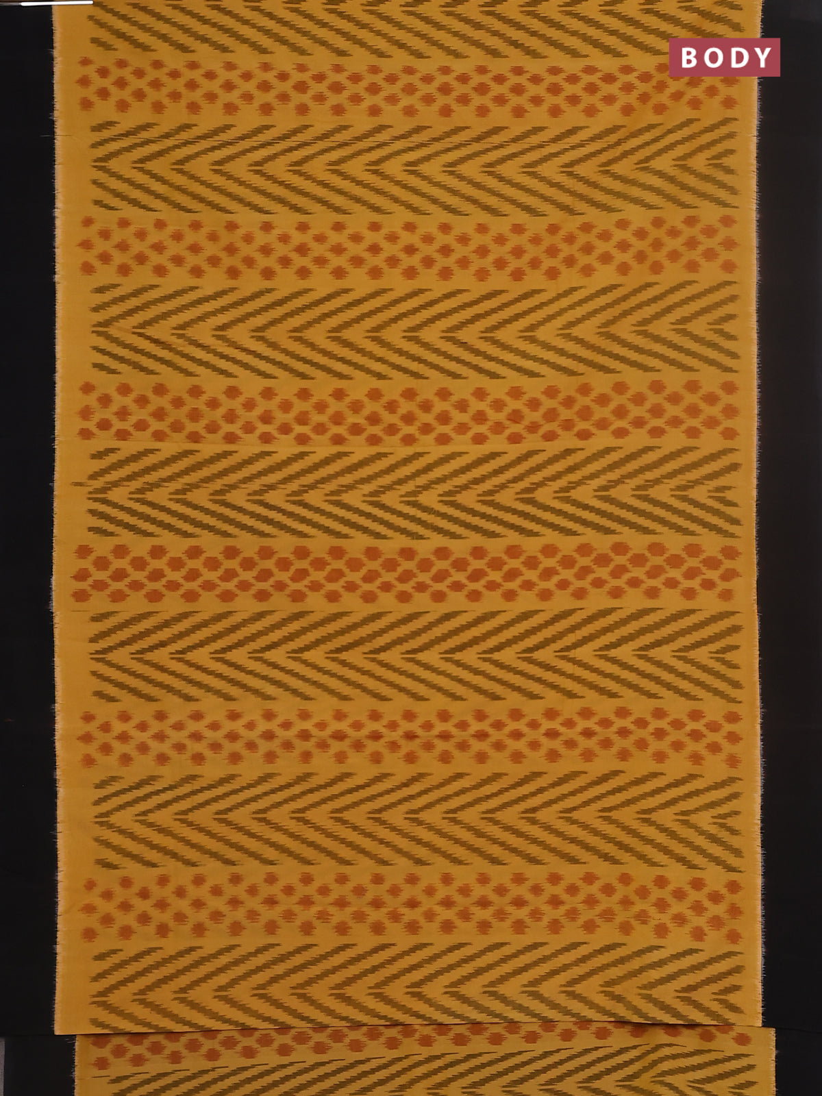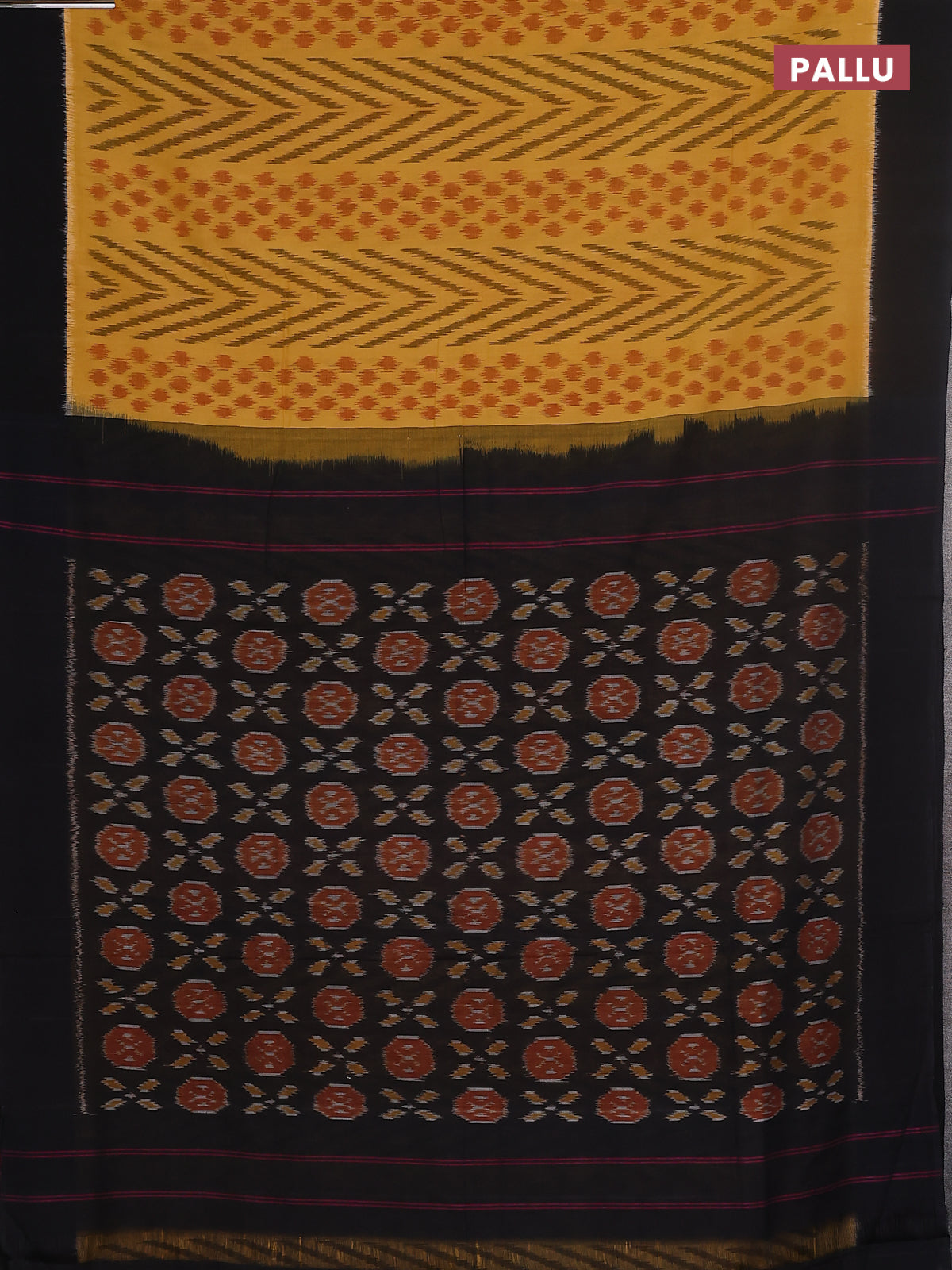 Ikat cotton saree yellow and black with allover ikat weaves and simple border