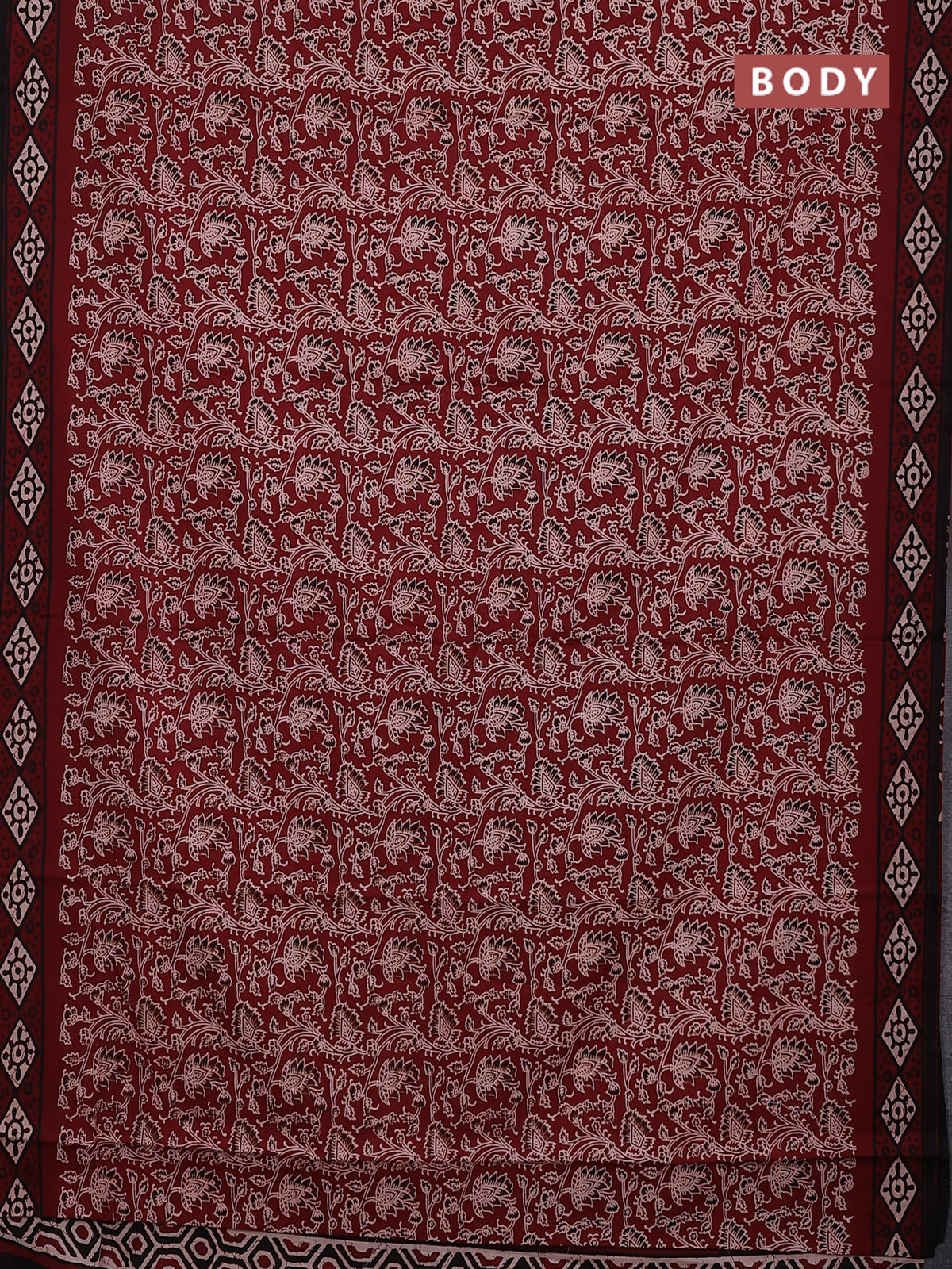 Jaipur cotton saree maroon and black with allover kalamkari prints and printed border