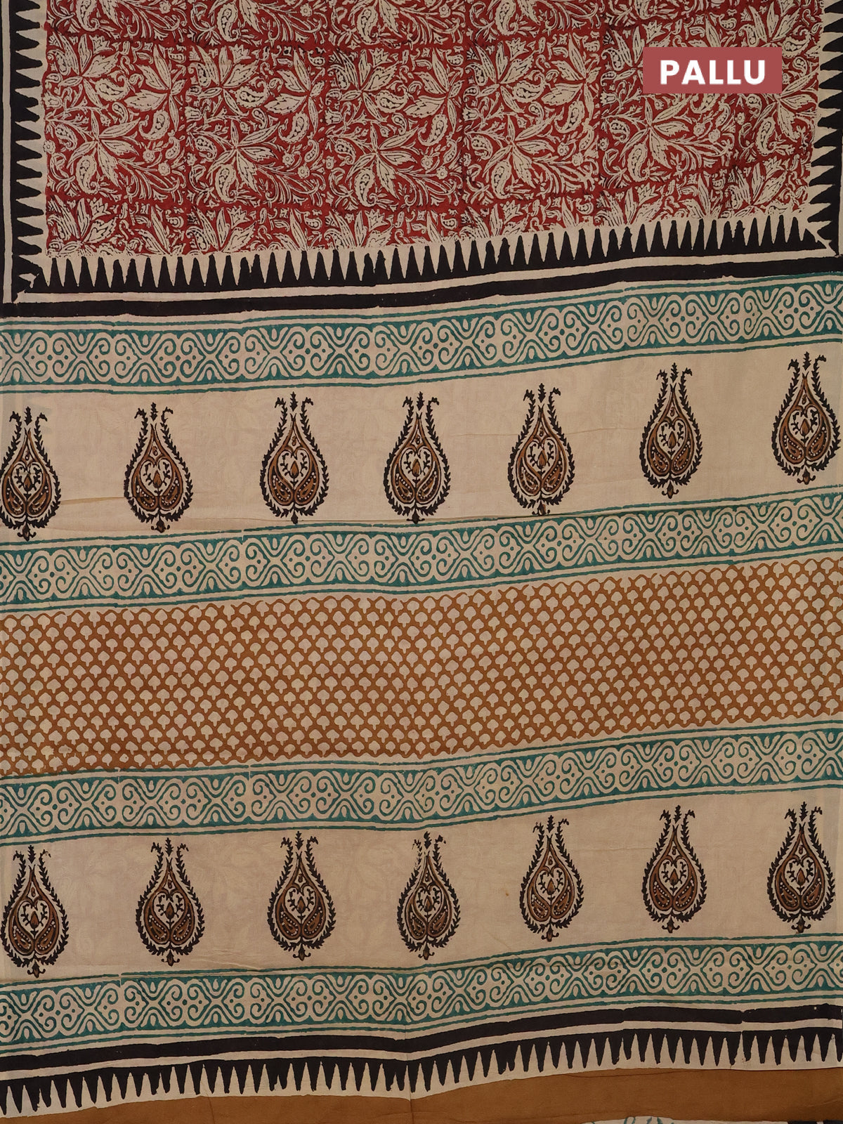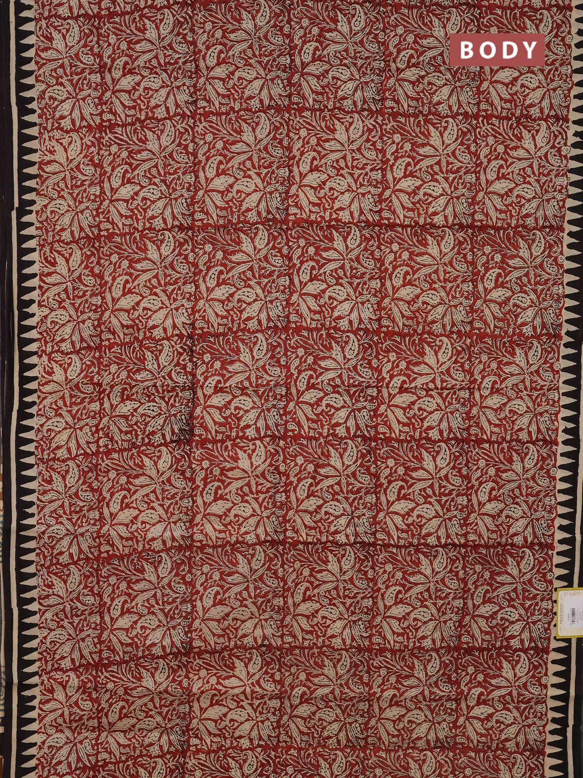 Jaipur cotton saree marron and black with allover kalamkari prints and printed border