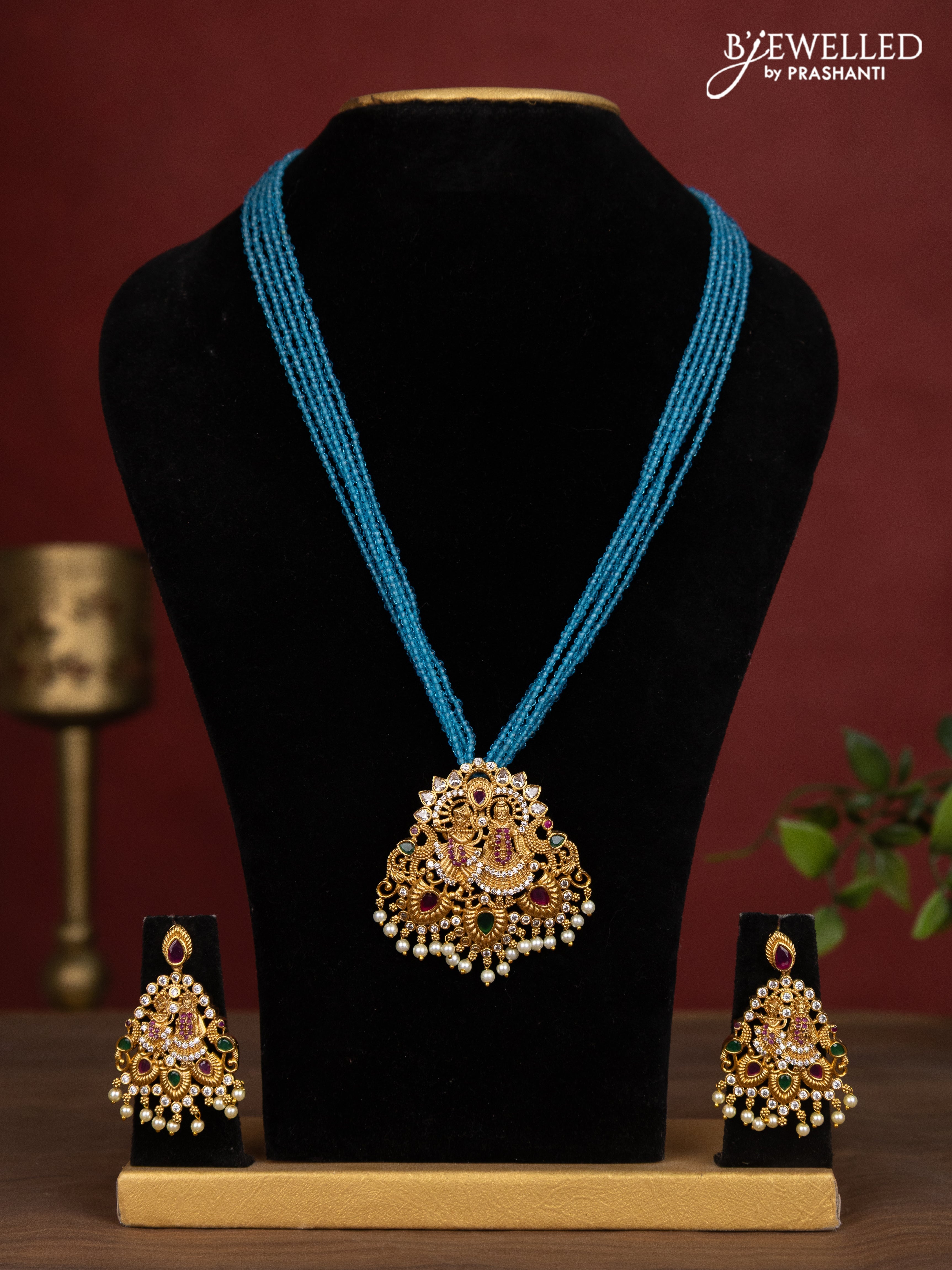 Jaipur crystal beaded multilayer light blue necklace with radhe krishna pendant