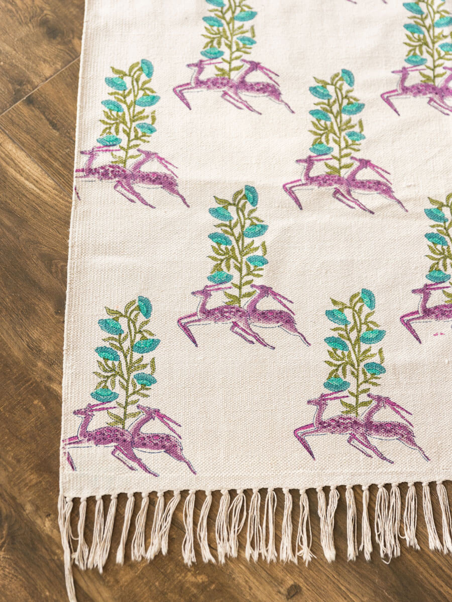 The rug shown in the photo is 4*6 ft. Number of motifs may vary depending on the size of the rug.