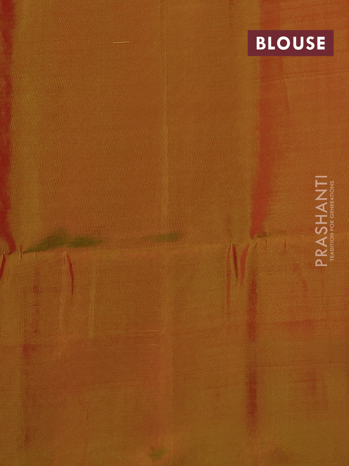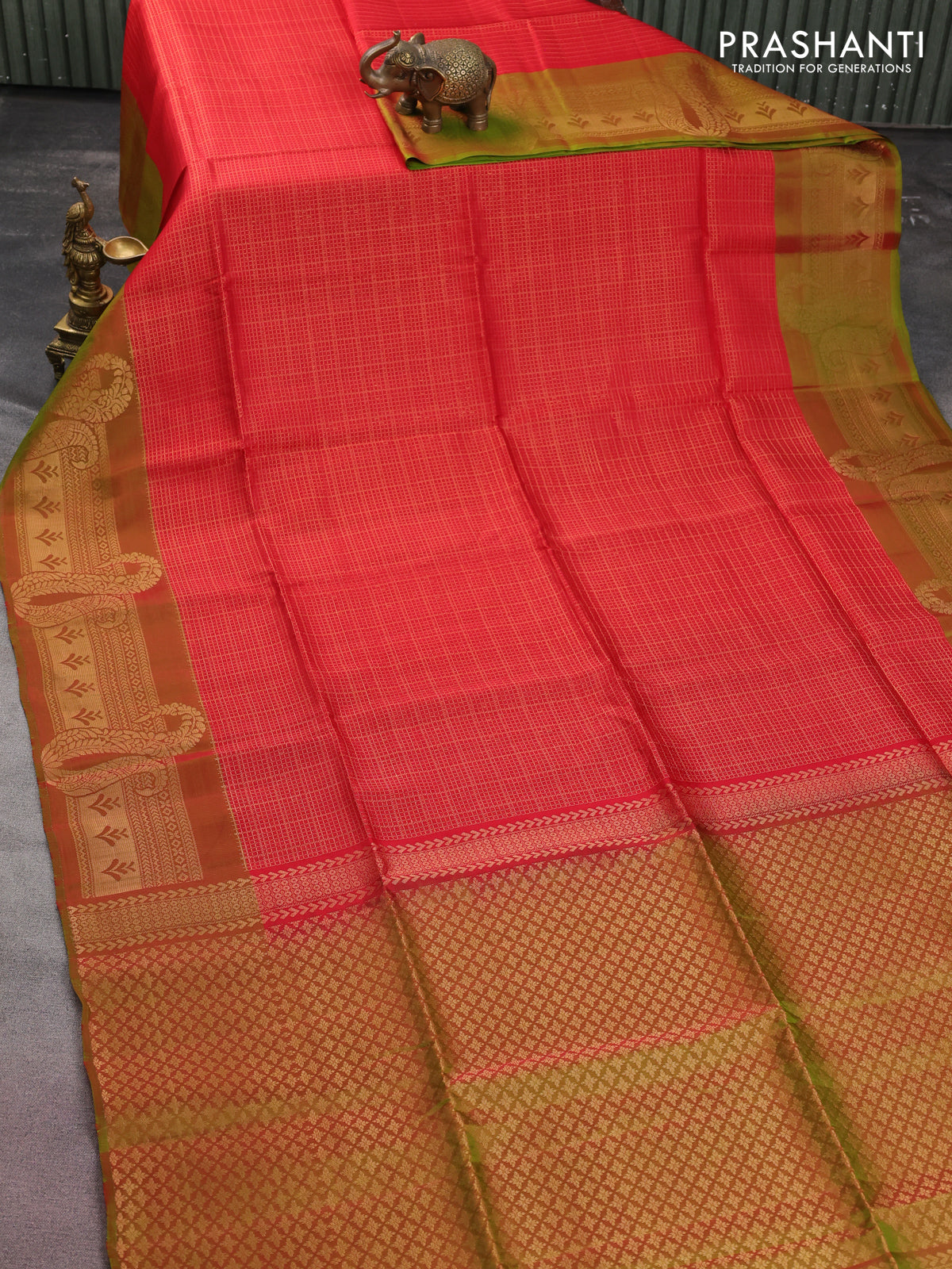 Kanchipuram soft silk saree red and dual shade of greenish red with allover zari woven brocdae weaves and long zari woven border