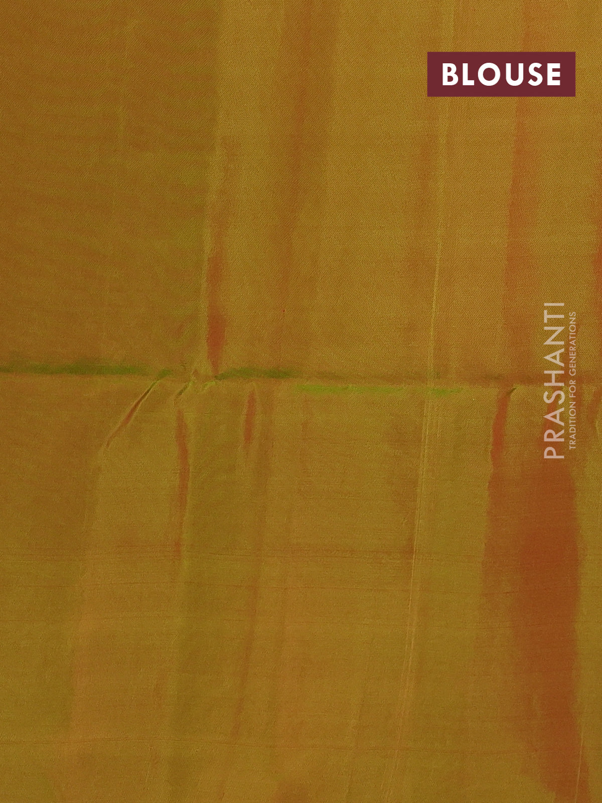 Kanchipuram soft silk saree red and dual shade of greenish red with allover zari woven buttas and long zari woven border