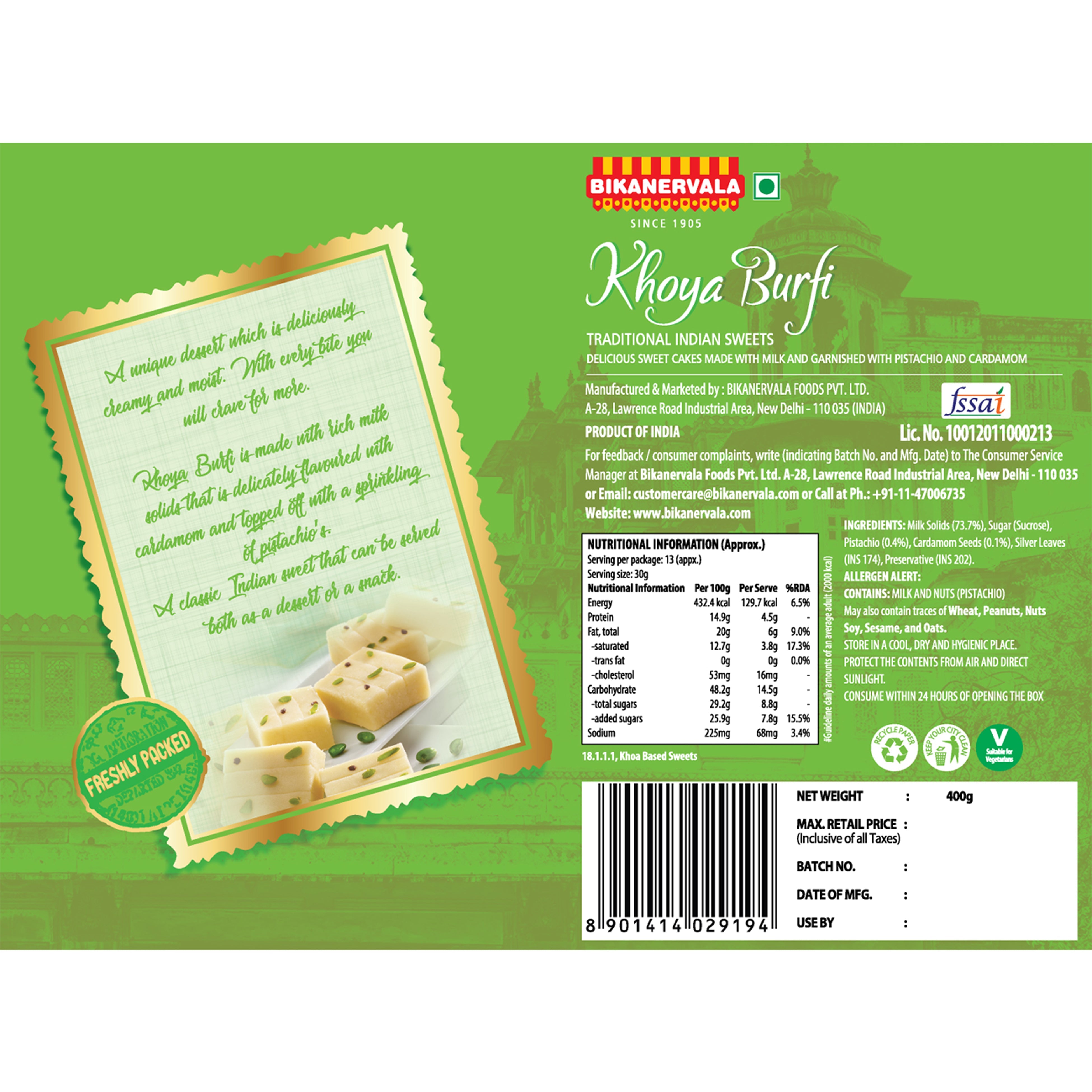 Classic Indian sweet made of cashews, sugar, cardamom powder and ghee.