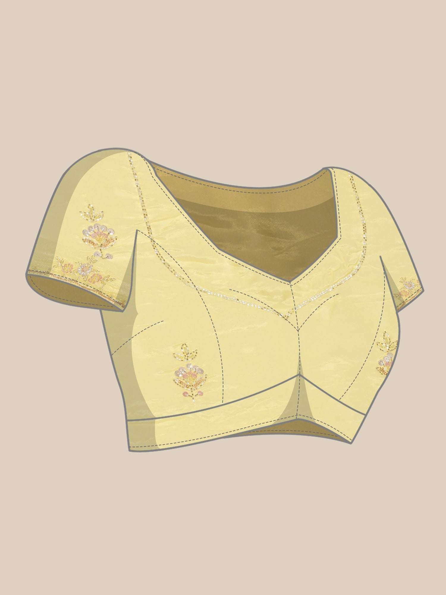 The blouse piece included is unstitched.