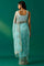 Light Blue Floral Printed Embroidered Zari Work Net Saree with Unstitched Blouse