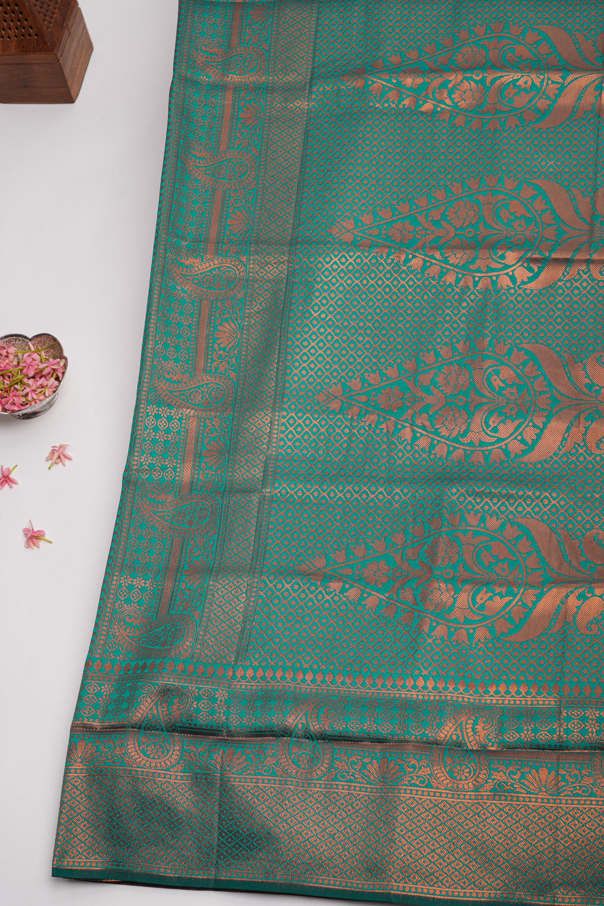 Latest LIGHT GREEN BUTTIS SILK BLEND Saree with SELF ZARI border. This saree comes with PLAIN WITH BORDER SILK BLEND blouse.
