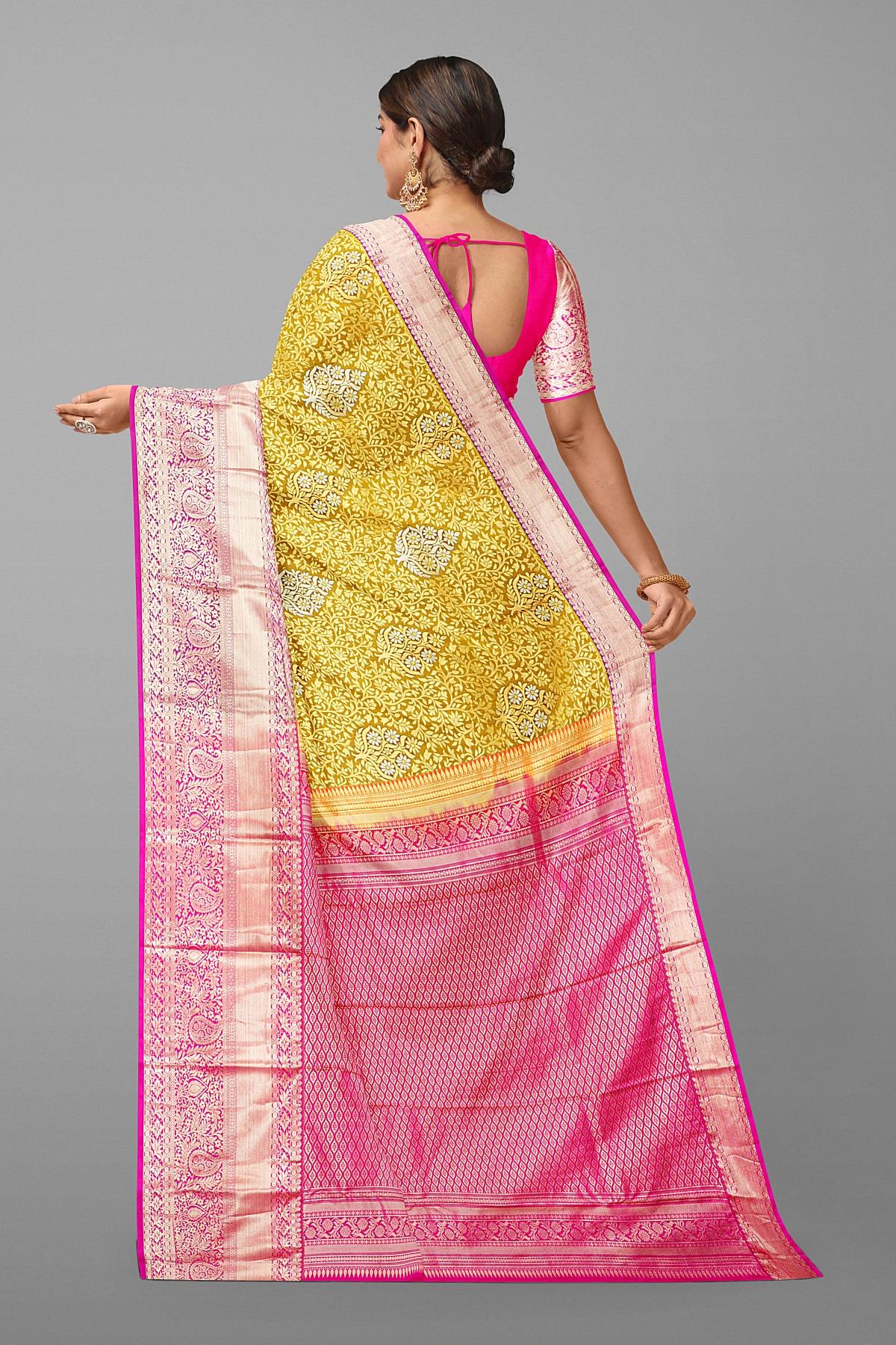 LIGHT GREEN and PINK FLORAL JAAL SILK BLEND Saree with SEMI PATTU
