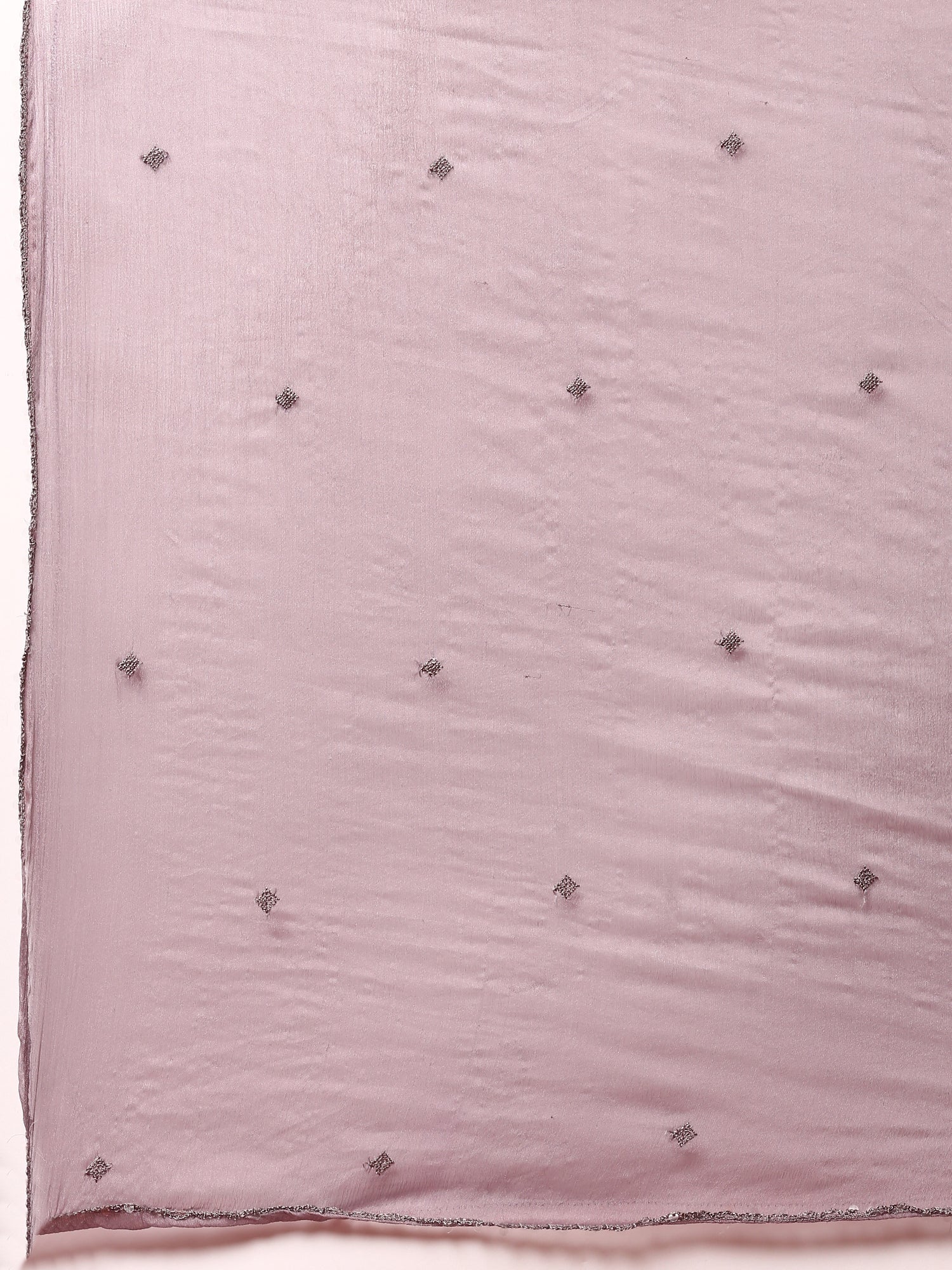 Elevate your wardrobe with the Lilac Chinon embroidered three-piece suit set, designed to blend elegance and comfort effortlessly. Crafted from soft chinon fabric, this set features intricate embroidery that adds a touch of refined charm. The coordinated pieces ensure a polished look perfect for festive occasions or formal gatherings. Experience graceful style and lasting comfort in one stunning ensemble.