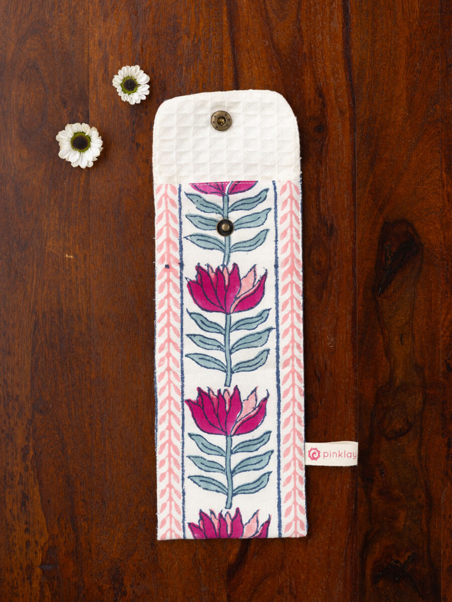 Lotus Love Block Printed Toothbrush Travel Pouch
