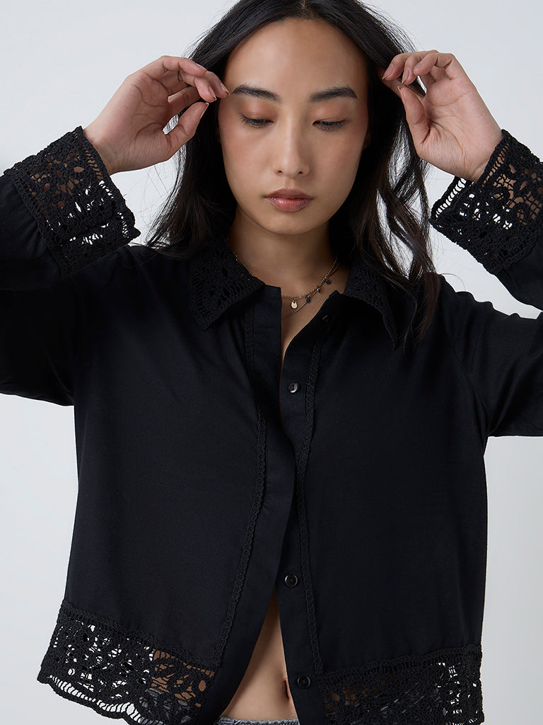 LOV Black Lace Detailed Shirt