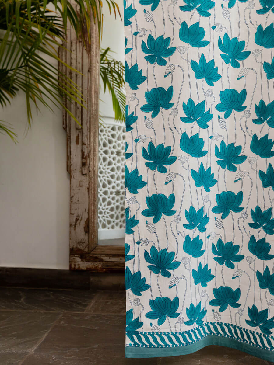 Padma or the Lotus is a central figure in many art forms including Pichhwai. It's a flower with meaning, beauty, and great cultural significance. The origin of the Lotus in Hindu mythology goes as far back as 'Samudra Manthan'. Its first association is with Lakshmi who also emerges from 'Samudra', hence, is referred to as Padmaja or Padmavati. This hand block printed home textiles collection is inspired by the beautiful lotus and other nature inspired elements.