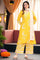Mango Yellow Floral Printed Shantung A-line Kurta, Printed Parallel Pants and Dupatta Set
