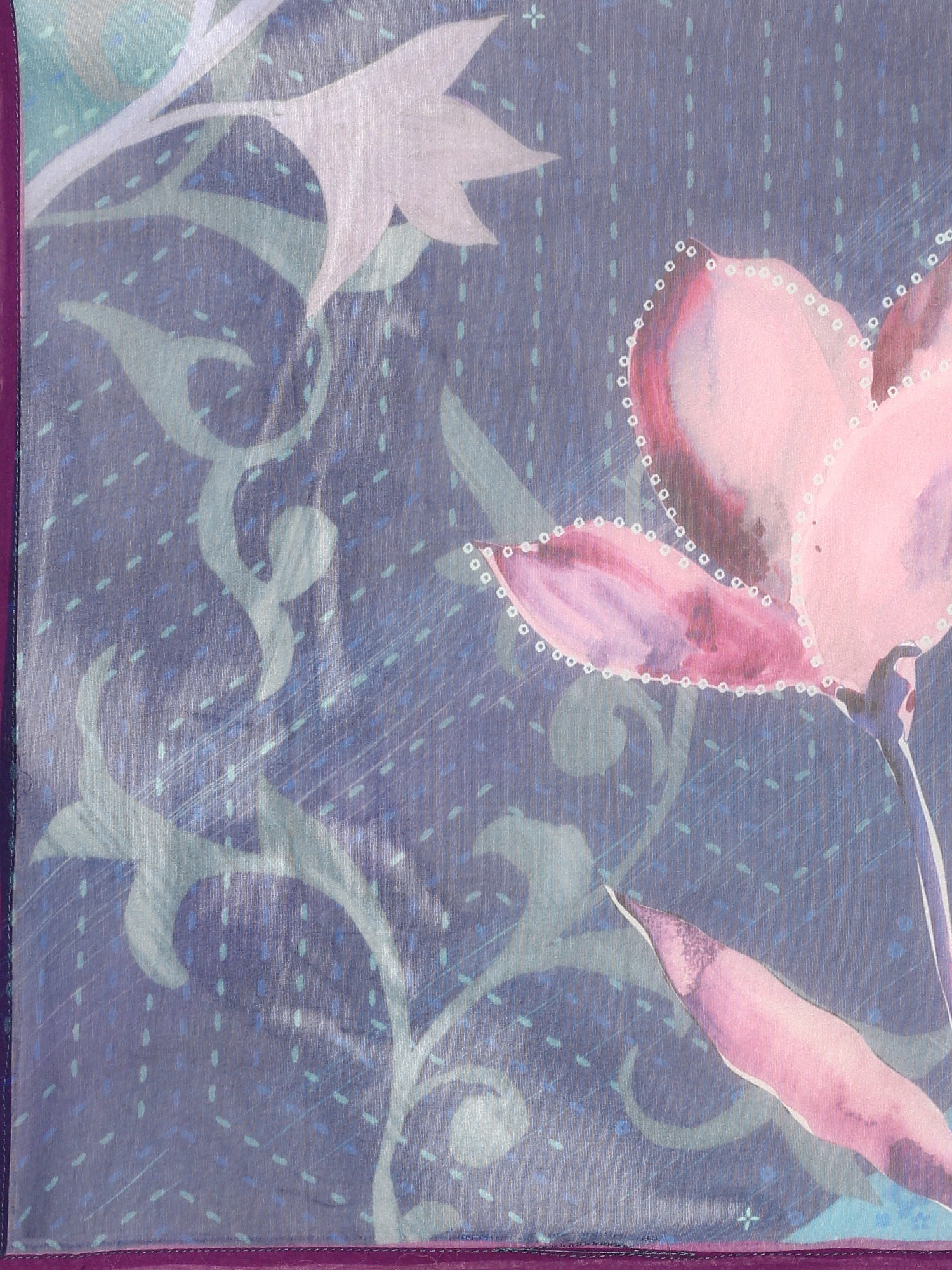 Experience elegance with this midnight blue georgette 3-piece suit set, featuring a timeless leheria print. The palm-shaped neckline is beautifully adorned with delicate beads and sequins, adding subtle shimmer to the sophisticated design. Crafted for comfort and style, this ensemble is perfect for graceful occasions where refinement matters.