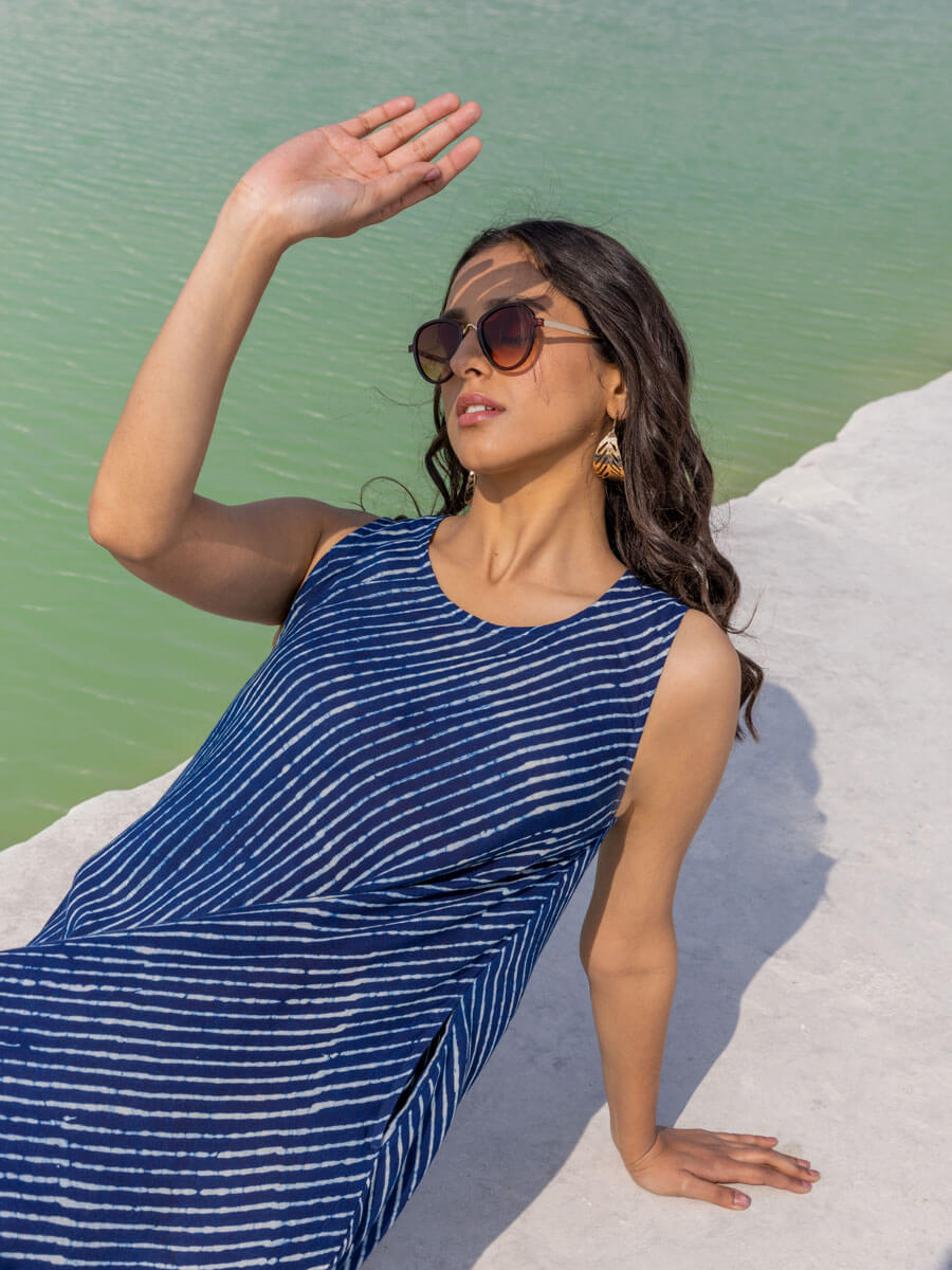 Moon Indigo Asymmetrical Sleeveless Dress