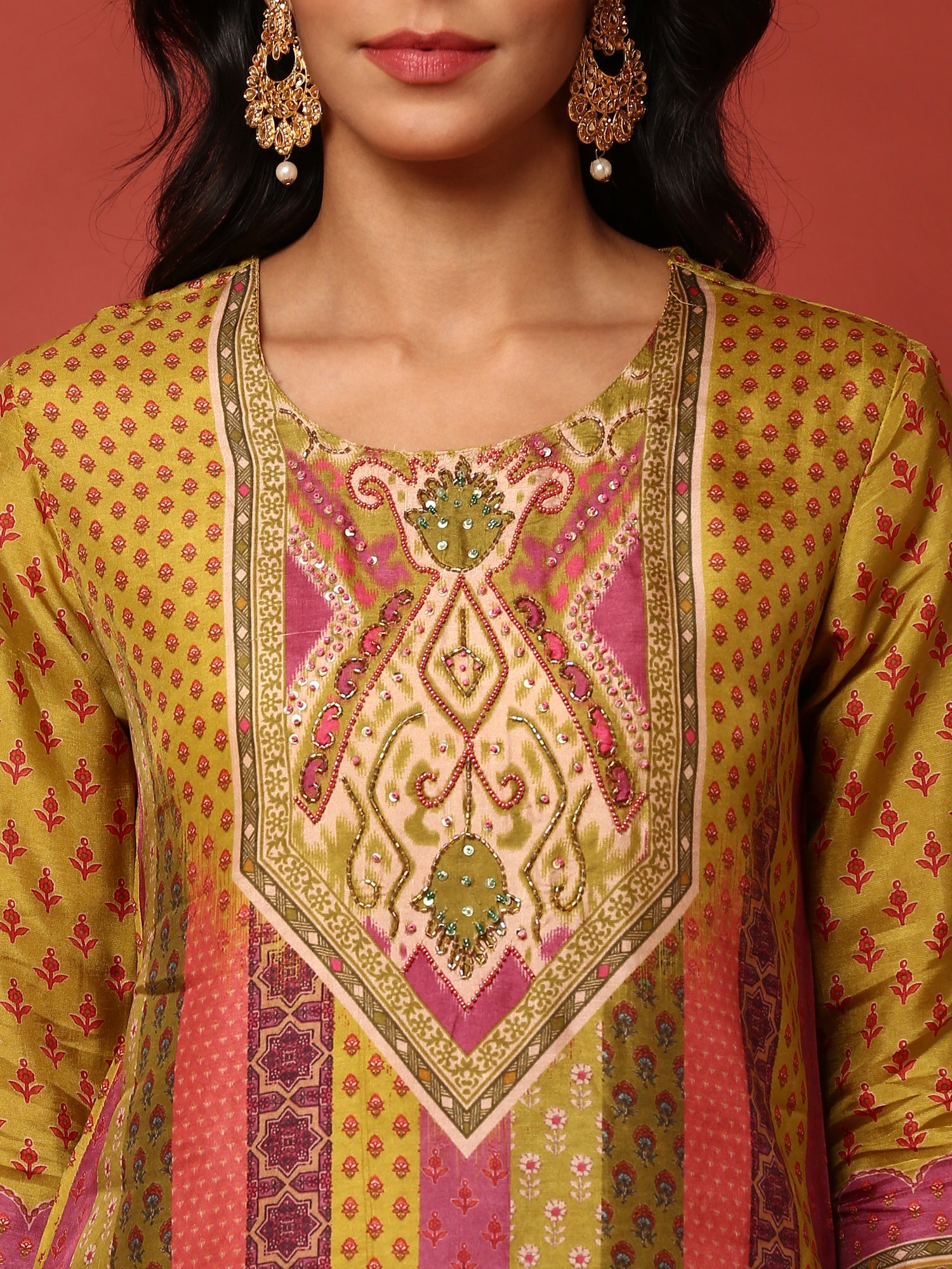Elevate your wardrobe with this multi-color Muslin three-piece suit set, featuring digitally printed designs that combine tradition with modern artistry. Crafted from soft, breathable Muslin fabric, it ensures comfort throughout the day. The vibrant digital print adds a contemporary flair while maintaining the elegance of classic ethnic wear. Ideal for festive occasions or formal gatherings, this set offers versatility and a refined look with coordinated pieces that fit seamlessly together. Experience unmatched style and comfort in one thoughtfully designed ensemble.