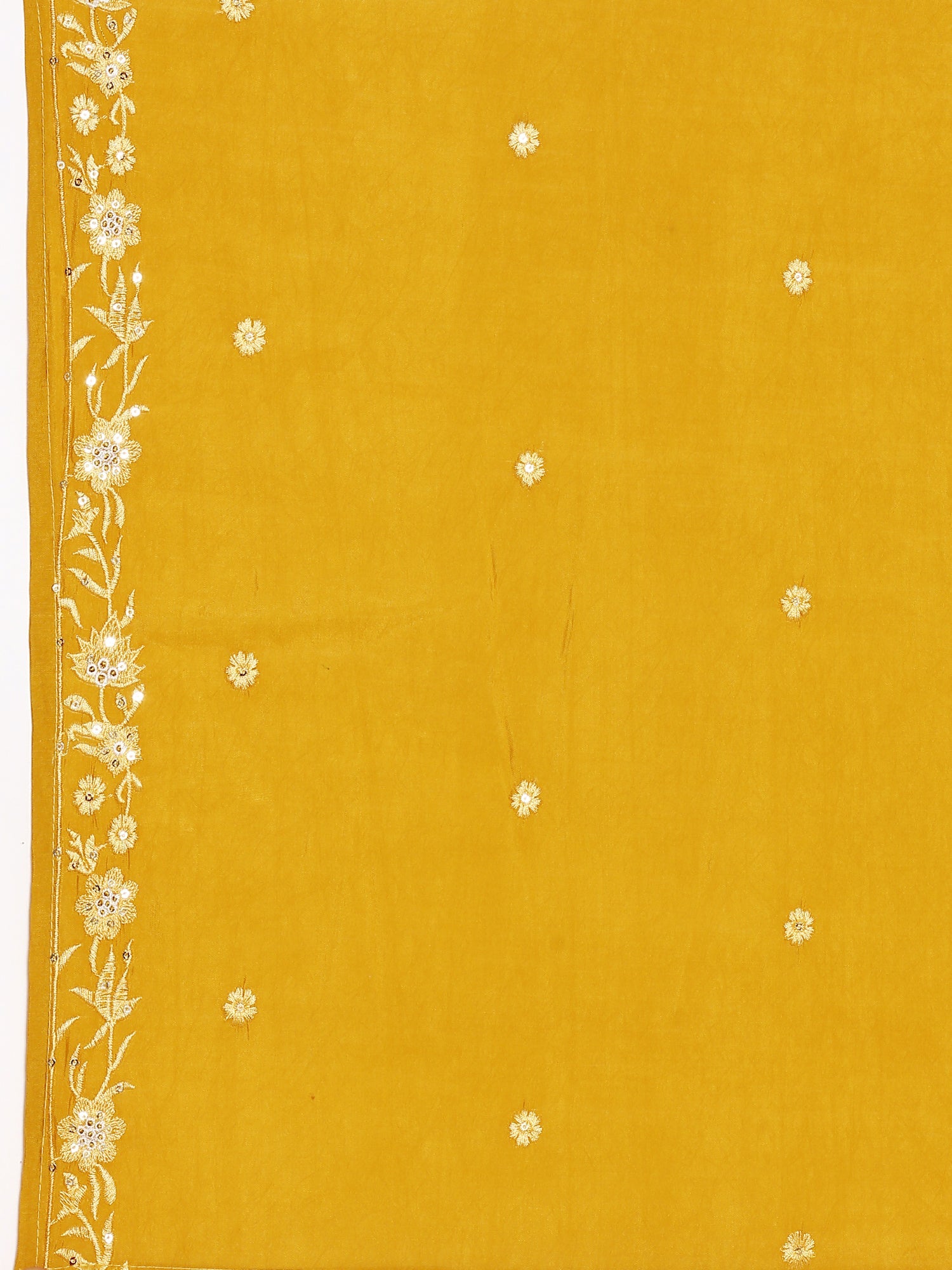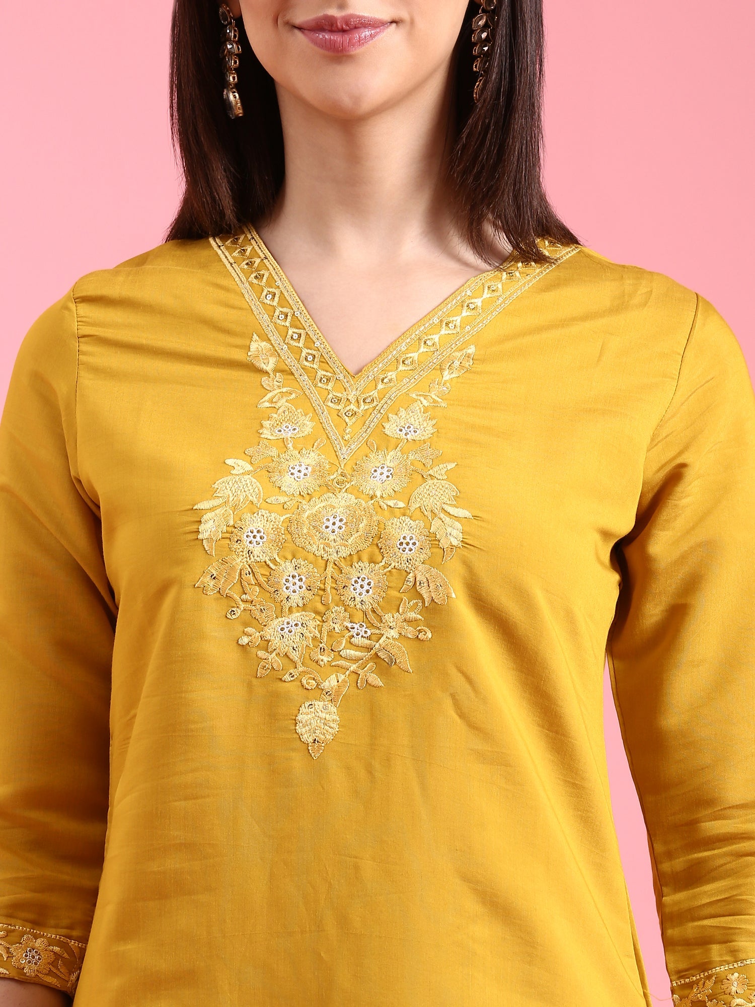 Mustard Modal Silk Embroidery Three Piece Suit Set