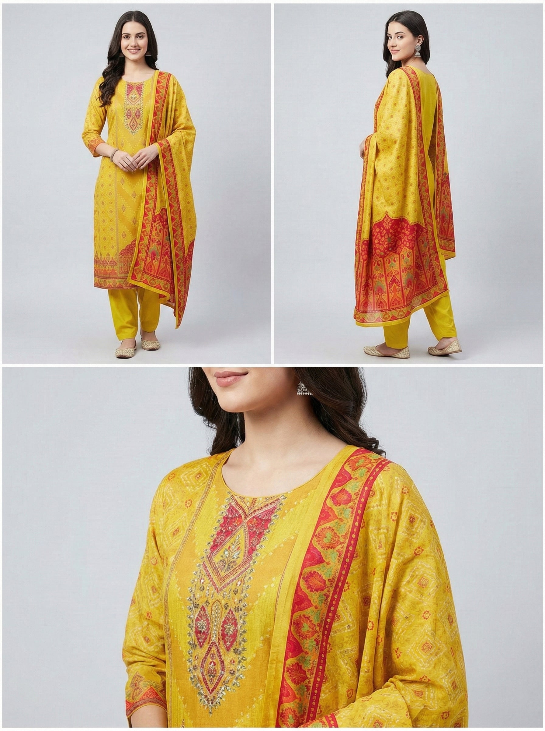 Embrace effortless elegance with this stunning Mustard Muslin Digital Print Three Piece Set. Crafted from breathable muslin fabric, this versatile ensemble features vibrant digital prints that bring contemporary flair to traditional wear. The three-piece collection offers complete styling flexibility—perfect for casual gatherings, festive occasions, or everyday comfort. The rich mustard tone complements all skin tones beautifully, while the quality muslin ensures all-day wearability. Whether you're dressing up or keeping it relaxed, this set empowers you to express your personal style with confidence and grace.
