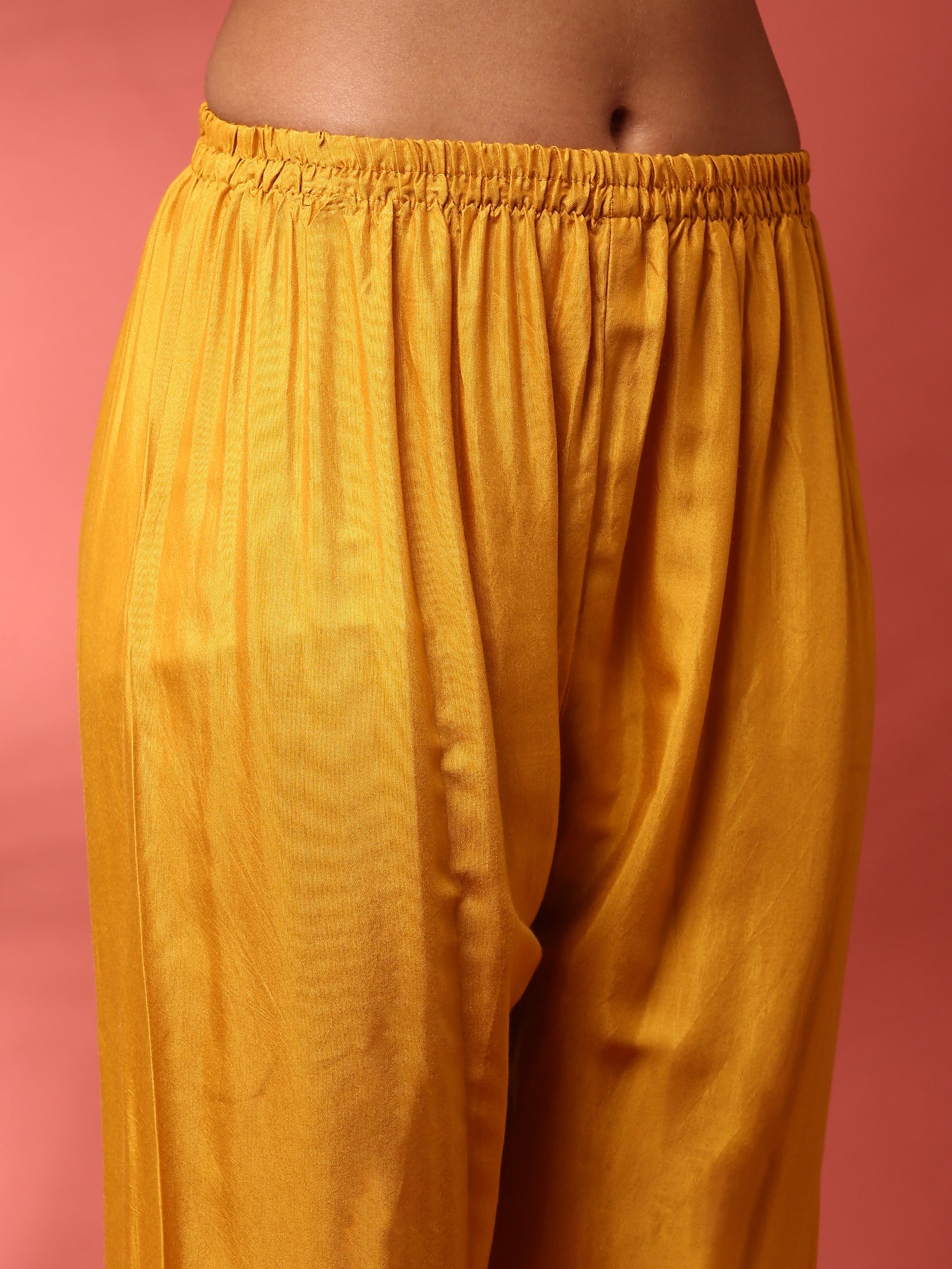 Elevate your ethnic wardrobe with this Mustard Muslin Straight three-piece suit set, featuring exquisite hand embroidery that highlights craftsmanship and detail. Crafted from breathable muslin fabric, it offers comfort and elegance for extended wear. The straight cut silhouette ensures a flattering fit, while the coordinated pieces provide versatile styling options suitable for festive and formal occasions alike. This suit set combines tradition with refined design for a timeless appeal.