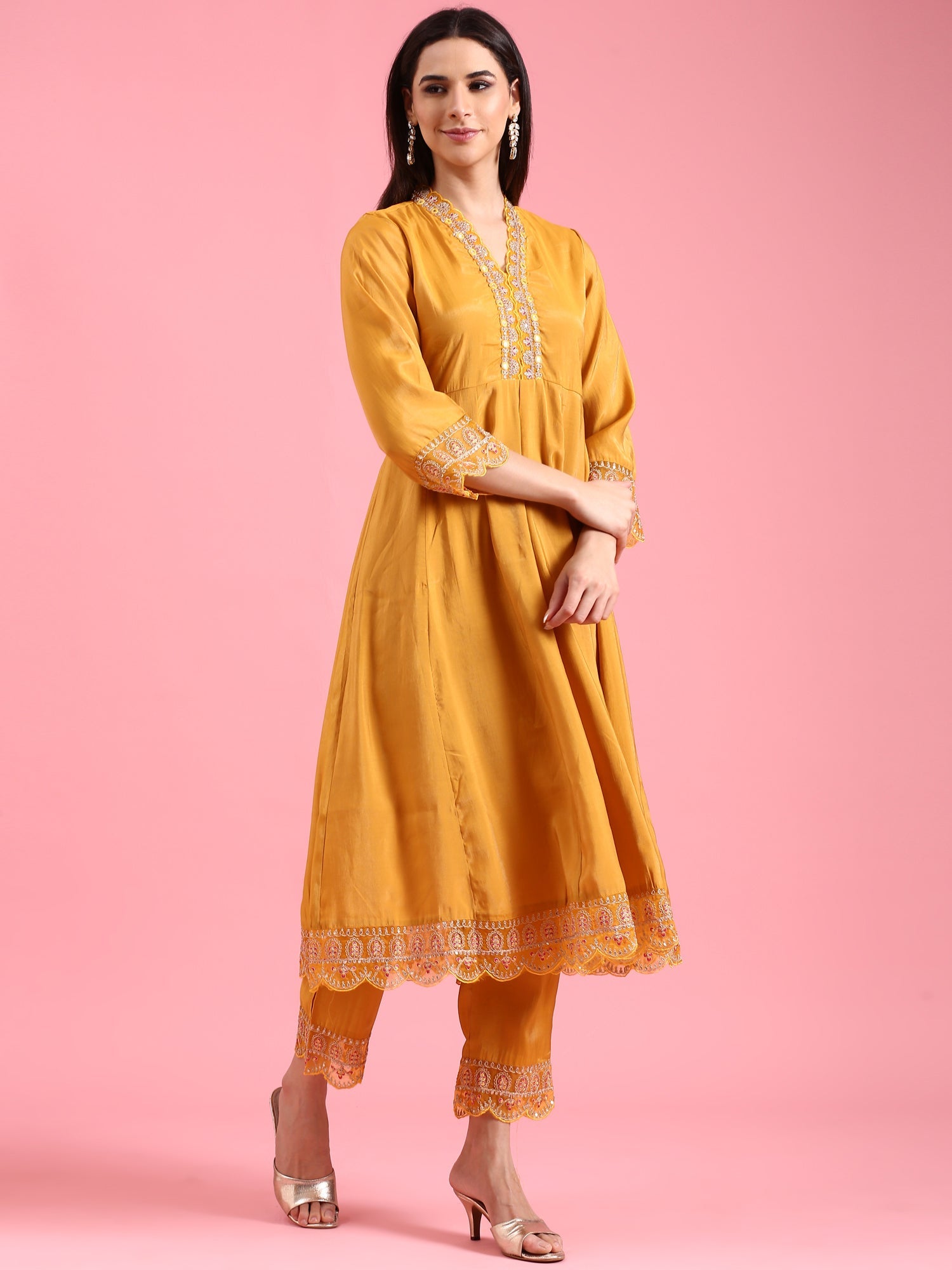 Mustard Vichithraa Silk Anarkali Three Piece Suit Set