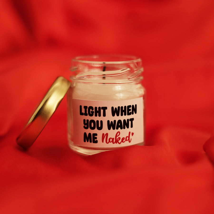 Naughty Candle - Set the mood with this super naughty candle that says 'light when you want me naked'. Light this candle and let it do the talking or maybe the teasing.