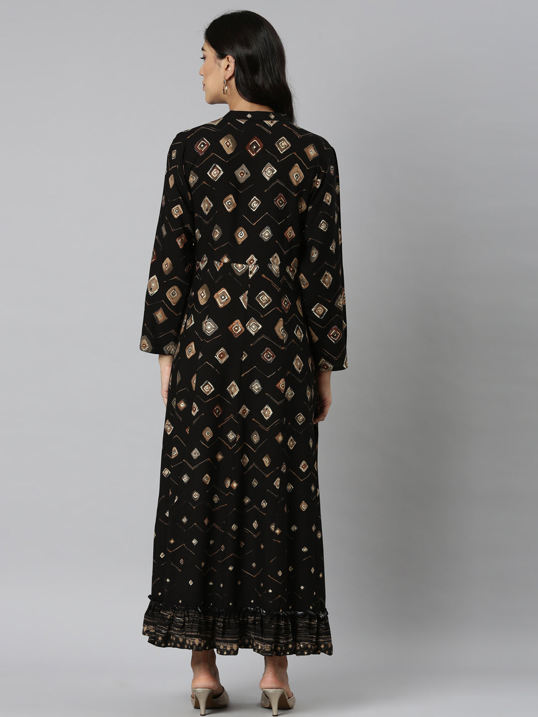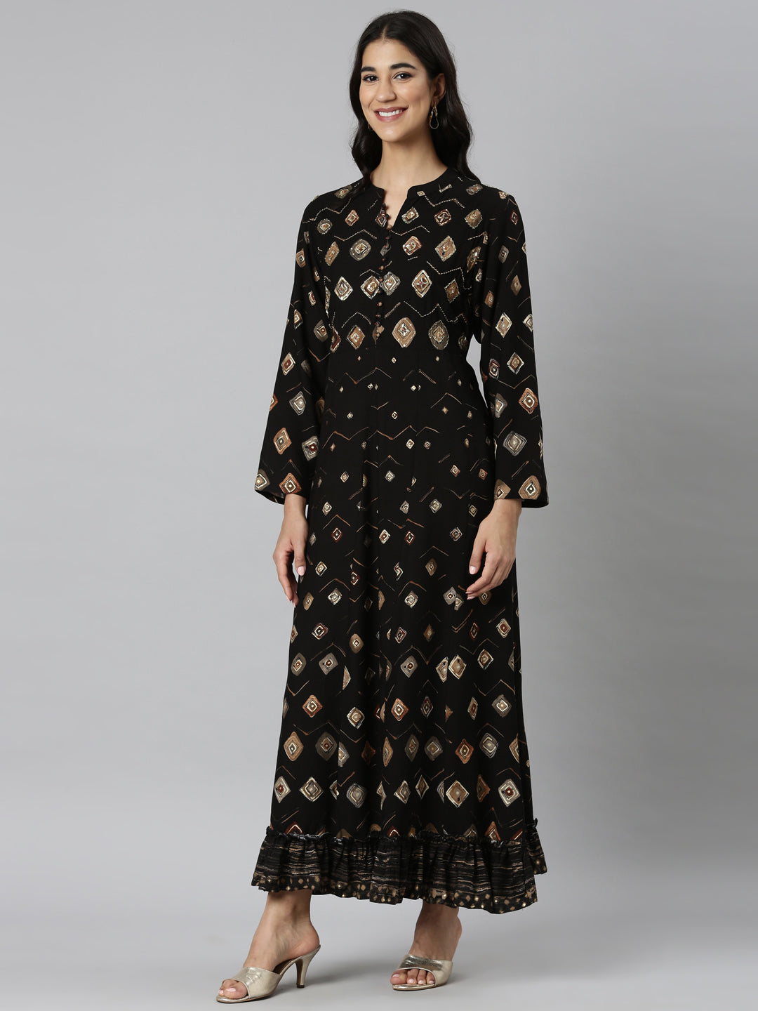 Neerus Black Casual Maxi Ethnic Motifs Dresses