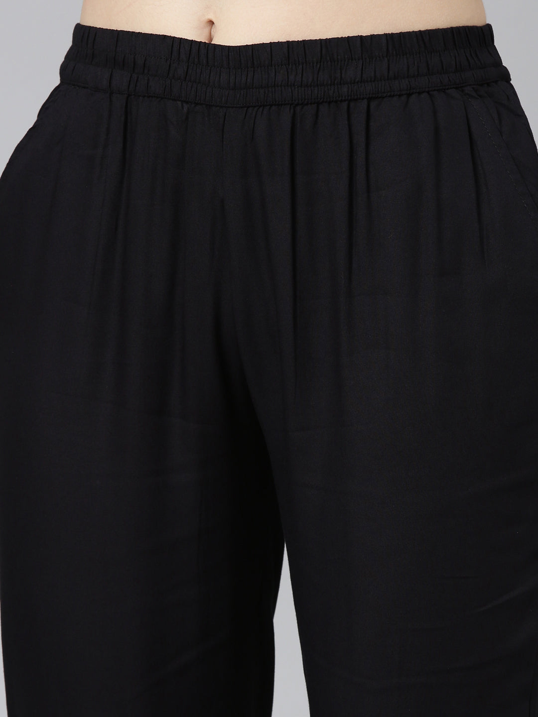 Neeru's Black Regular Straight Printed Readymade Suit An Ensemble Fit For A Queen Look Divinely Chic In This Colorblock Combo, Complete With Chic Trousers And A Dupatta For An Extra Dose Of Sophistication.