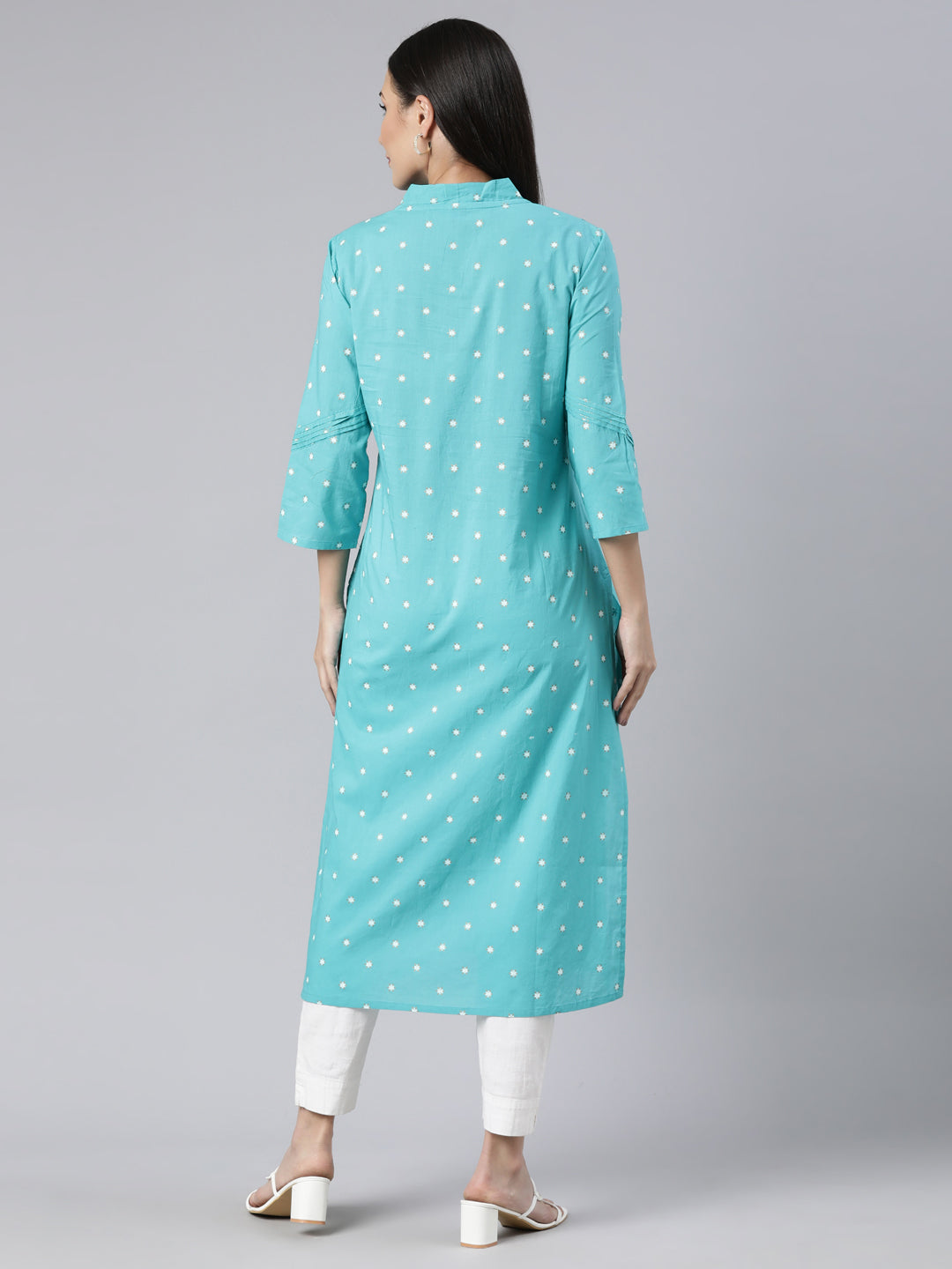 Neerus Blue Panelled Straight Floral Kurtas Effortlessly stylish and comfortable (just like your favorite pair of jeans), these kurtas boast a stunning floral print and a flattering straight fit. Perfect for any occasion, whether you're running errands or attending a wedding.