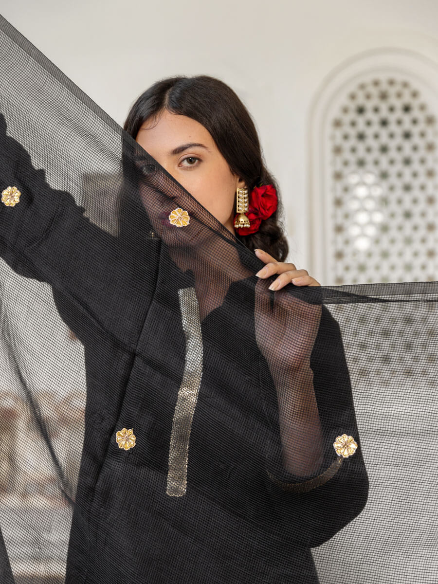 The shine of the moon, the sparkle of stars, the flutter of fireflies, and rustling of leaves on a pitch dark sky inspires this winter festive line - Chaand. Less is more is the cornerstone of this collection. Each handcrafted ensemble is made with pure fluid fabrics and features versatile cuts that can be used across occasions. The ensembles are designed to make you shine because your smile, confidence, love, and you are the shiniest moonlight in the universe.