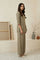 Whisper-soft drapery meets structured elegance. This olive green tunic set for women redefines minimalist ethnic fashion with its monochromatic palette and thoughtful detailing. Crafted from a breathable viscose rayon blend, the ensemble features a V-neck tunic with princess panel seams that flatter the form, while three-quarter roll-up sleeves add a touch of utilitarian chic. The look is anchored by matching wide-leg palazzo pants, creating a seamless column of color that elongates the silhouette.