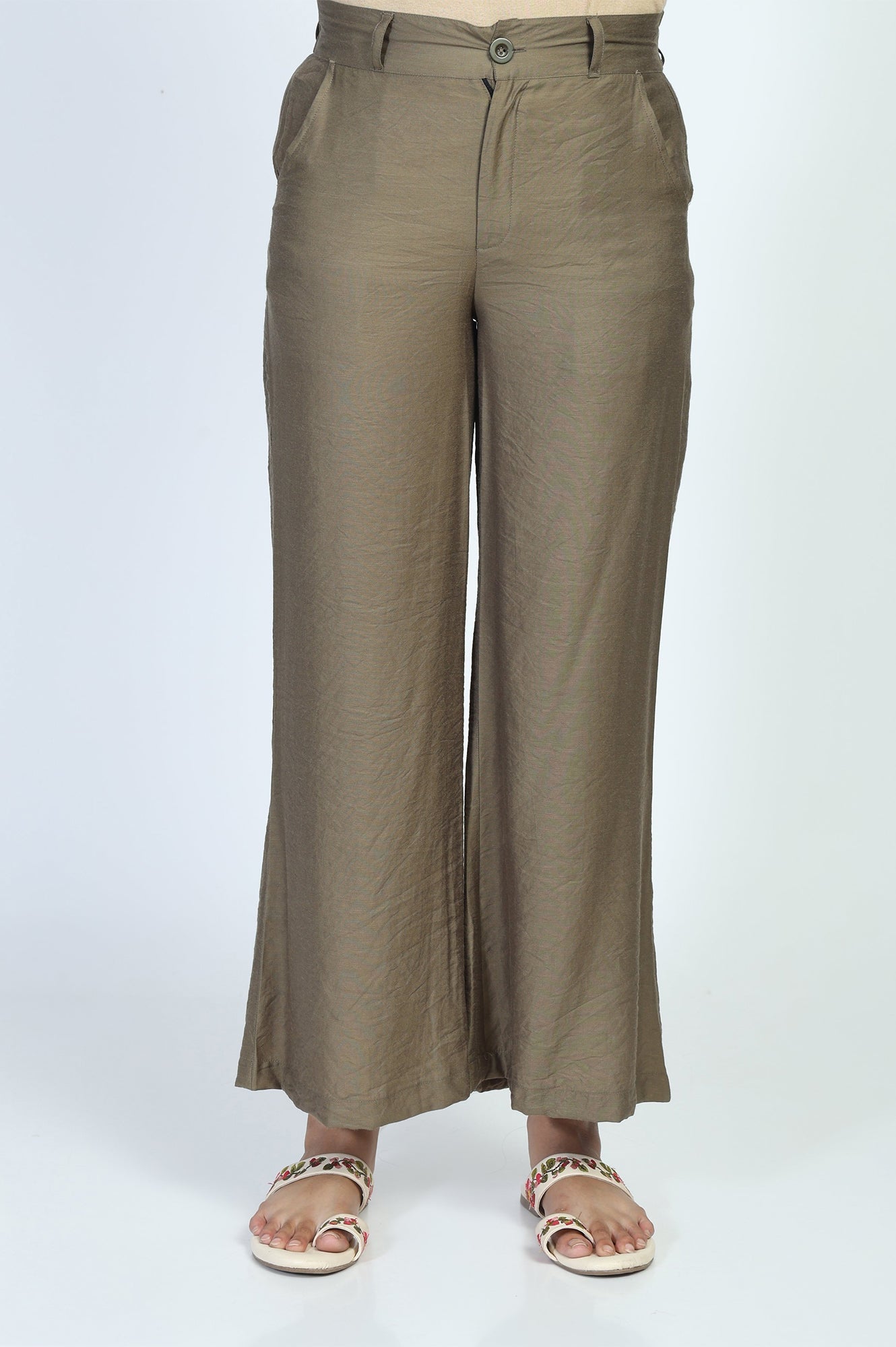 Olive Solid Buttons Straight Top with Palazzo Set