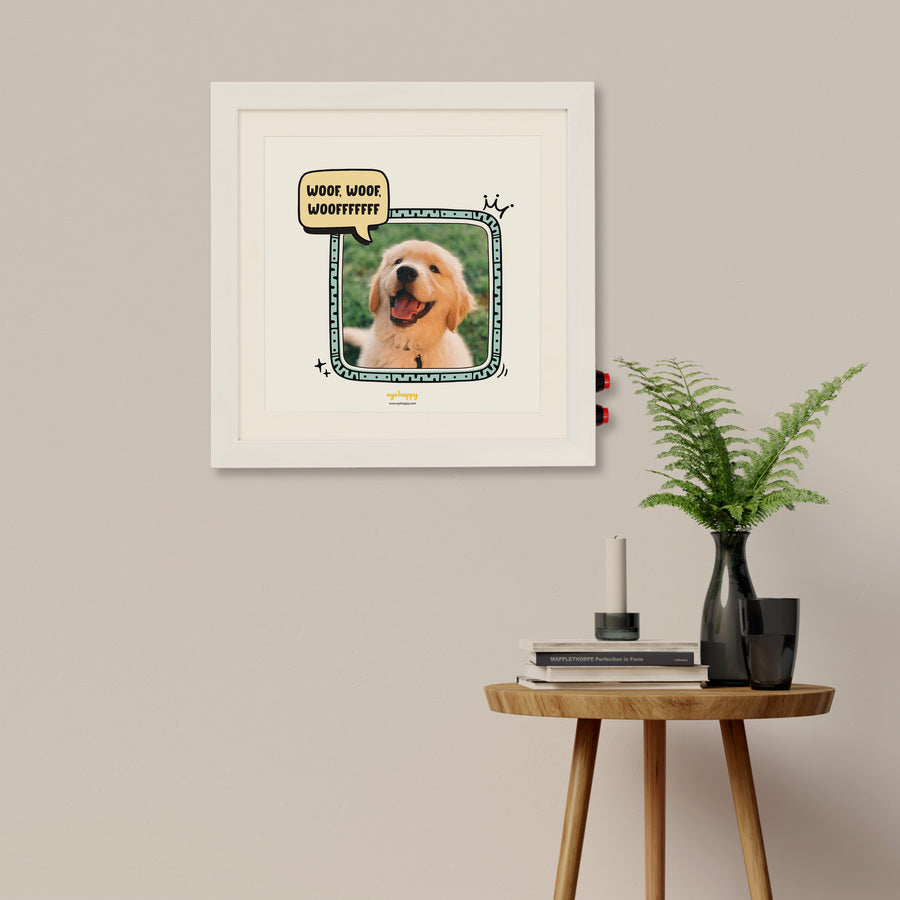 If your pet could talk, what would they say? With this Audio Pet Frame, now they can! Record their adorable barks, purrs, or playful sounds of your furry best friend and keep their voice forever. This one-of-a-kind frame comes personalized with your pet’s photo and a cute speech bubble with their special message.