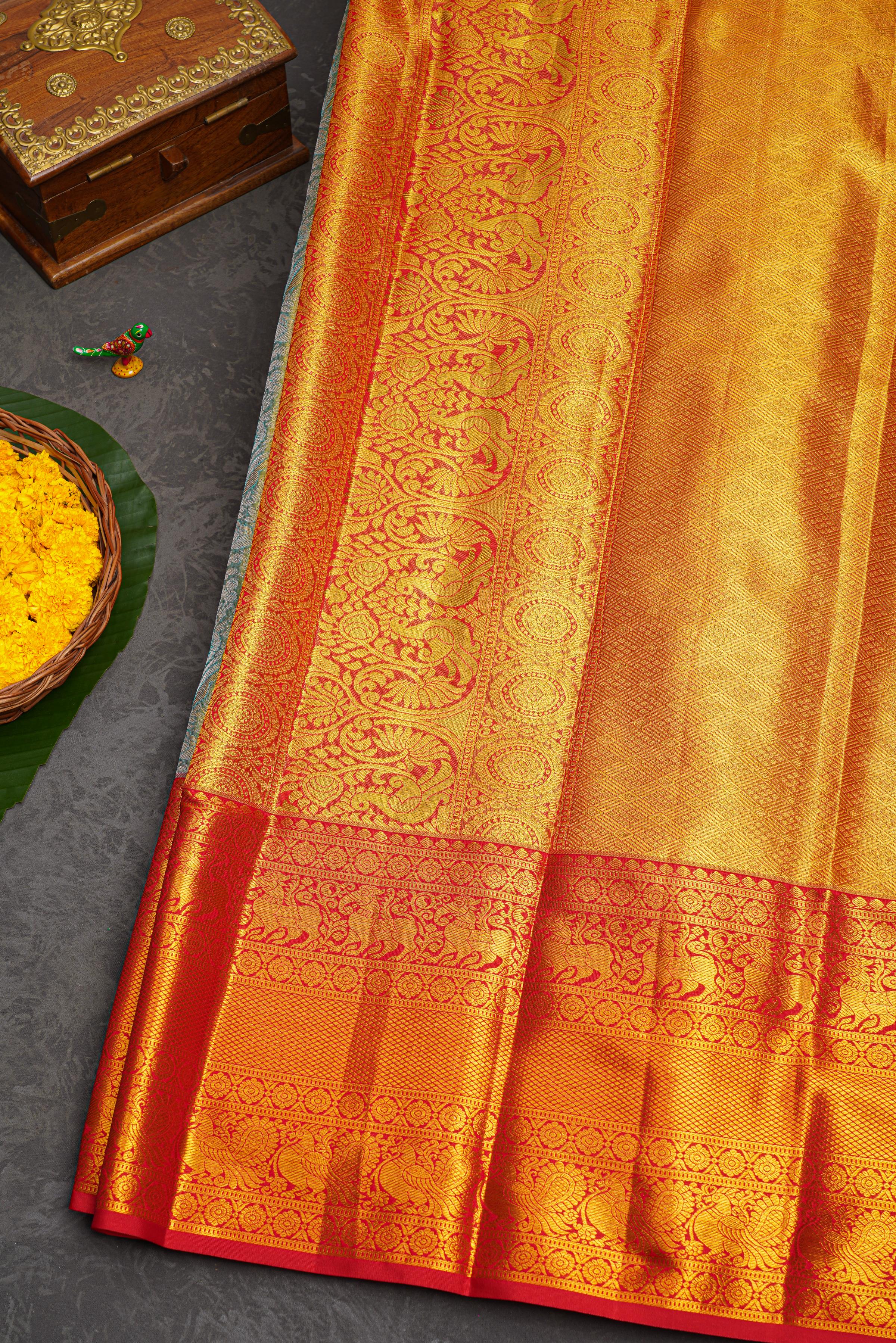 SEA BLUE and RED FLORAL JAAL SILK Saree with KANCHIPURAM
