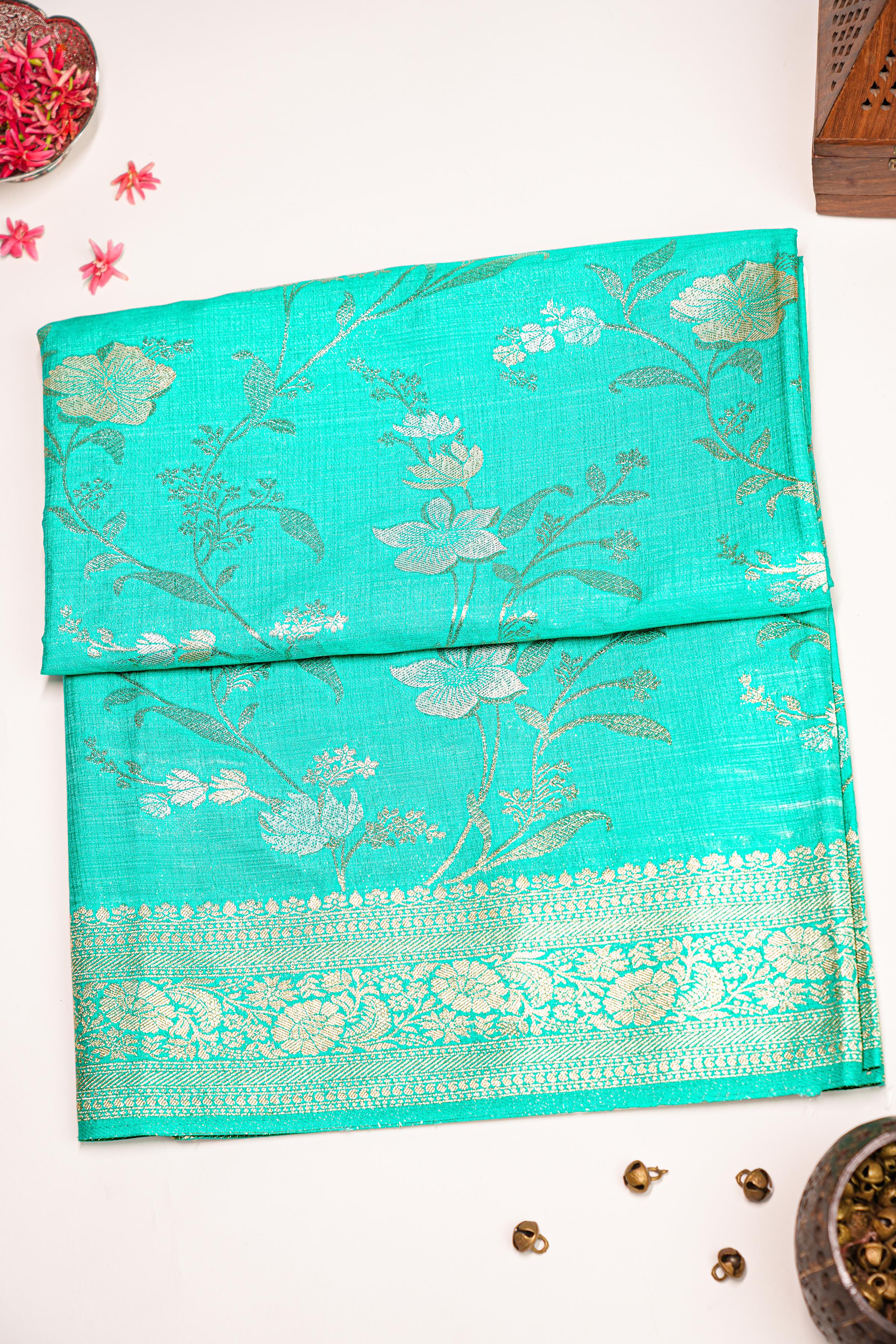 SEA GREEN and GOLD FLORAL JAAL SILK Saree with FANCY