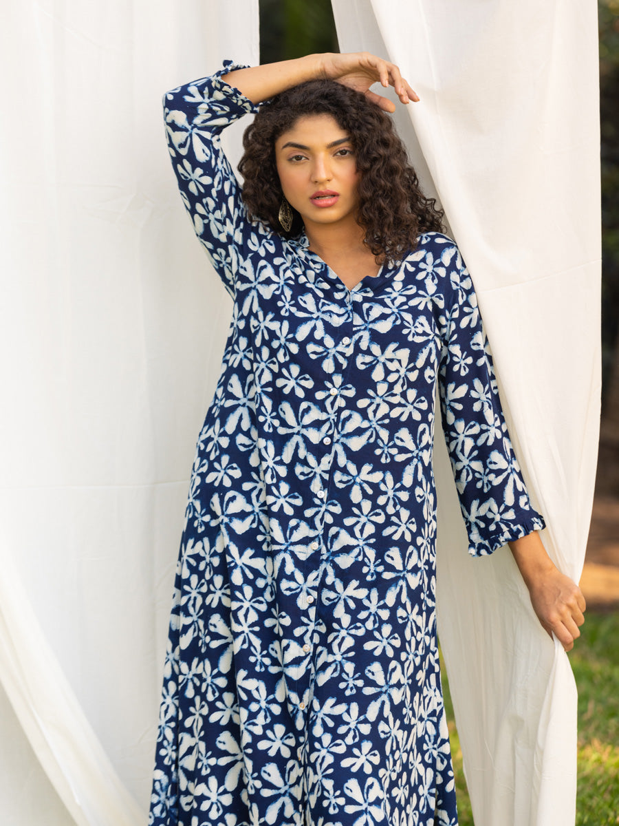 - Kurta: Regular fit, dabu hand printed on flowy modal | Features pockets