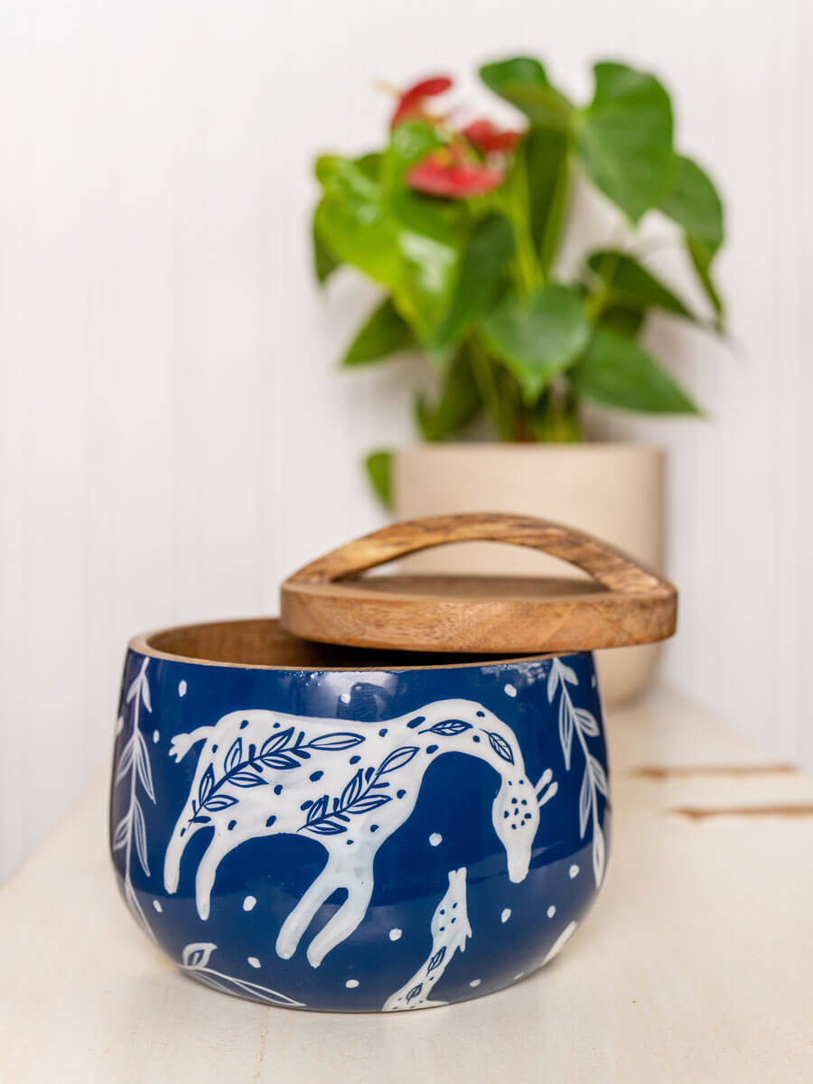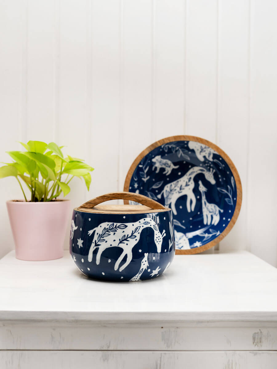 • Set includes: A wooden jar and bowl