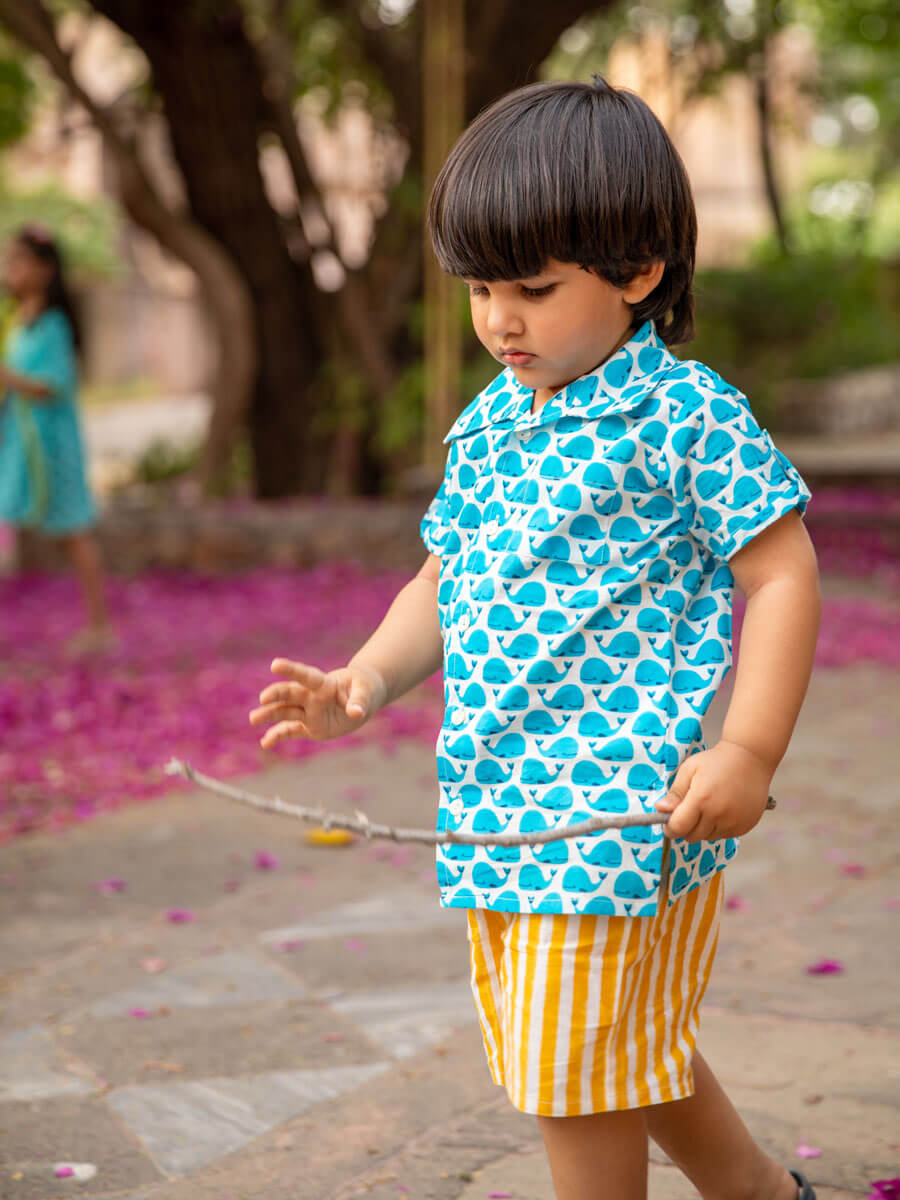 Set of 2 - Ocean Splash Organic Cotton Printed Shirt & Shorts