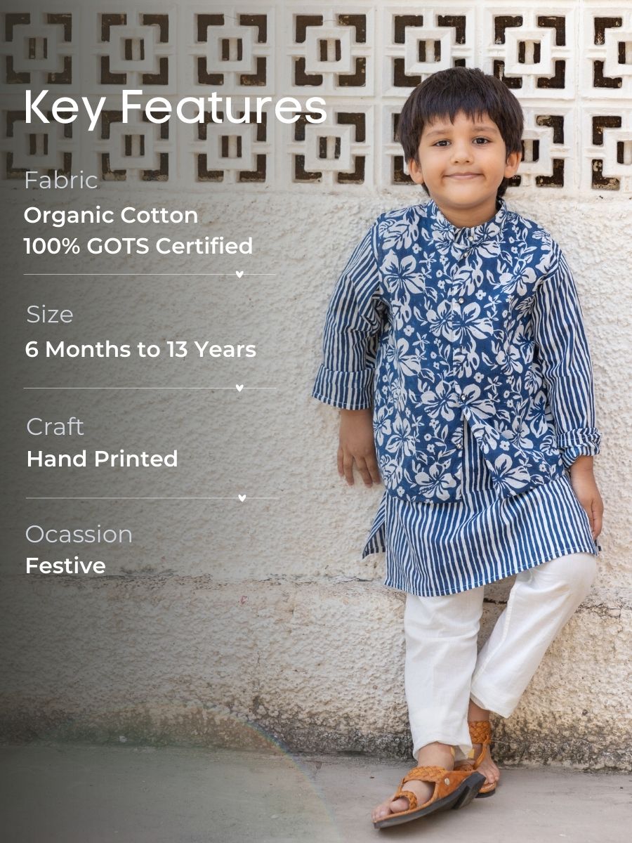 Set of 3 - Tirth Organic Cotton Long Kurta with Jacket