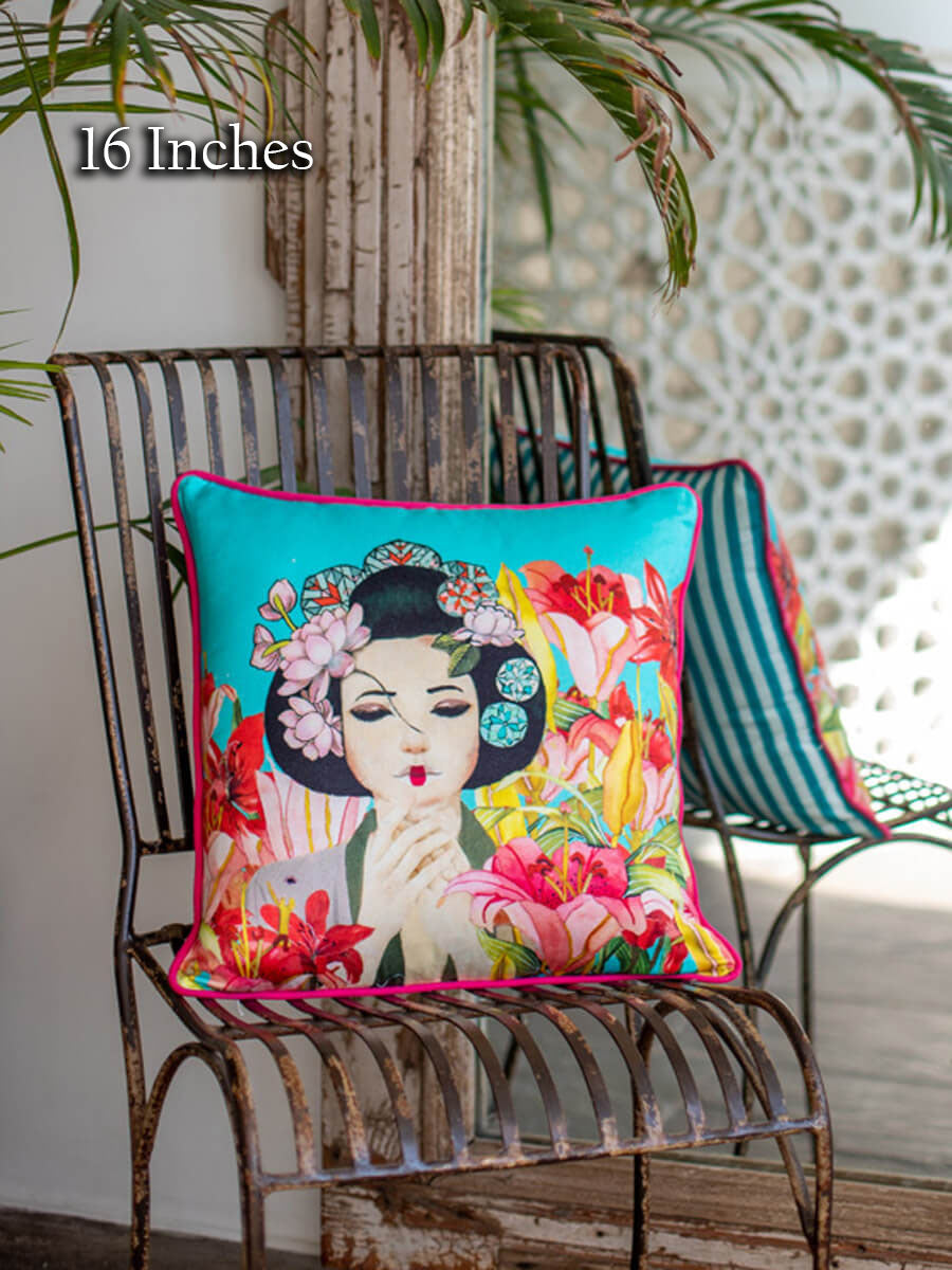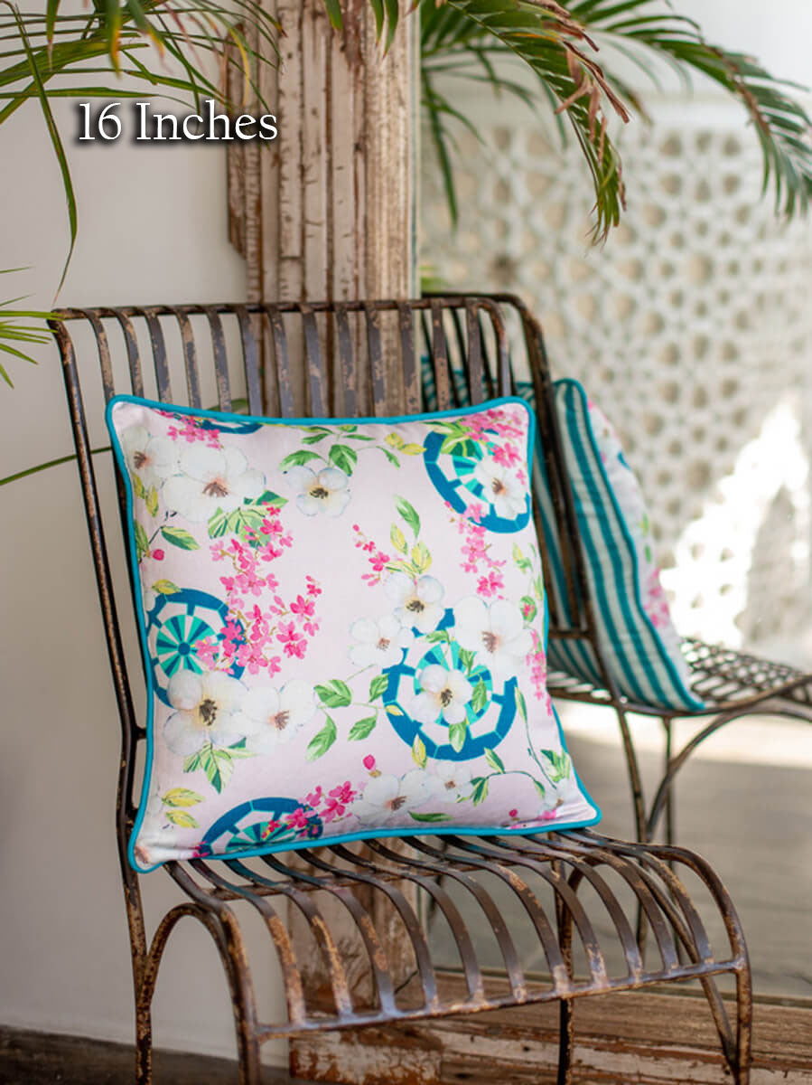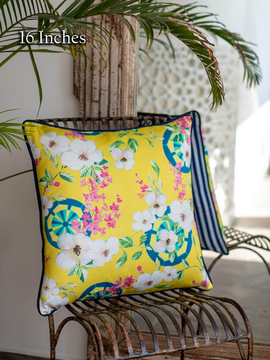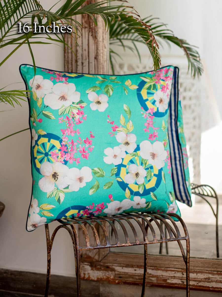 Inspired from the Far East, this collection showcases traditional life and culture using modern colors, accents, and patterns. Crafted in cotton canvas, accented with contrasting rope piping, and secured with a concealed zip. We recommend teaming it up with other cushion covers from this collection.