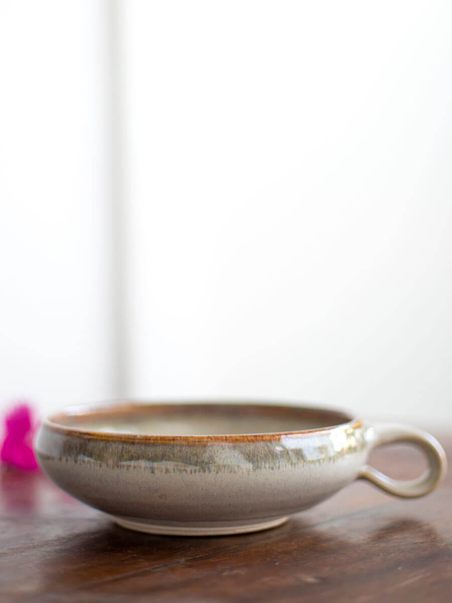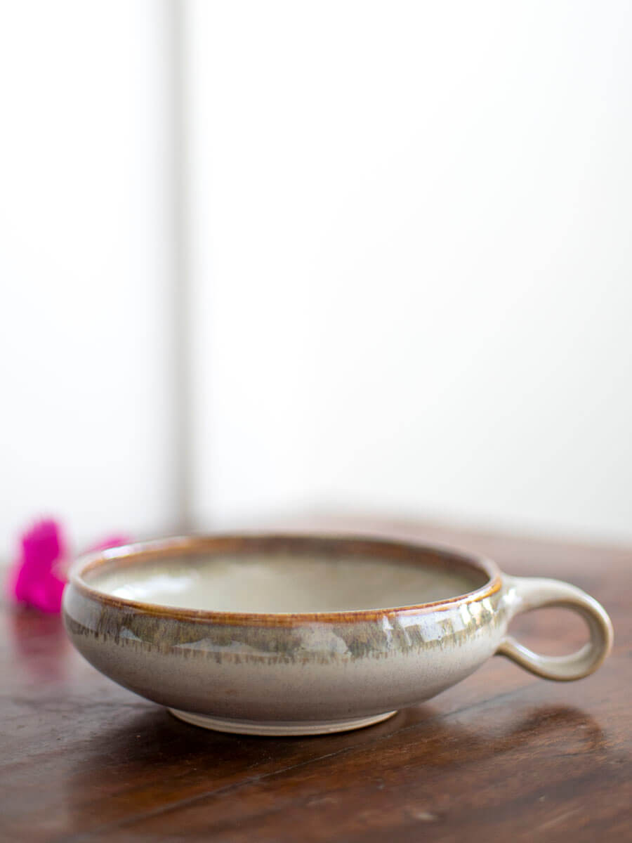 - Hand-thrown, glazed ceramic wide bowl with handle
