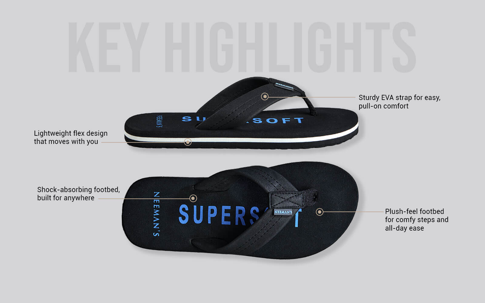 The Super Soft Flips are all about simple style and unbeatable comfort. With a clean, single-color design and just the right pop of detail, they’re easy to wear anywhere. The cushioned EVA footbed and soft straps add orthopedic comfort and make every step feel like a breeze, whether you're running errands or hanging out with friends. It’s comfort and style that moves with you, all day long.