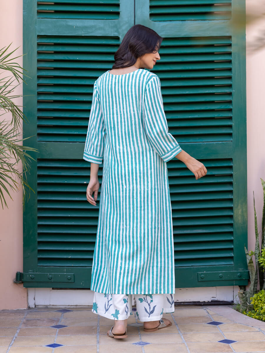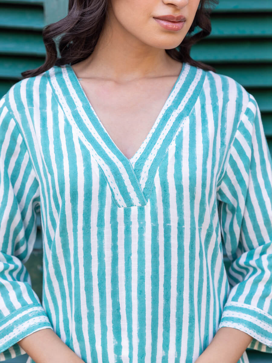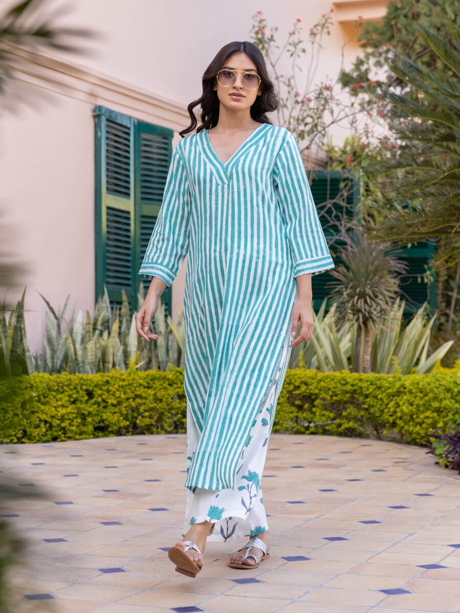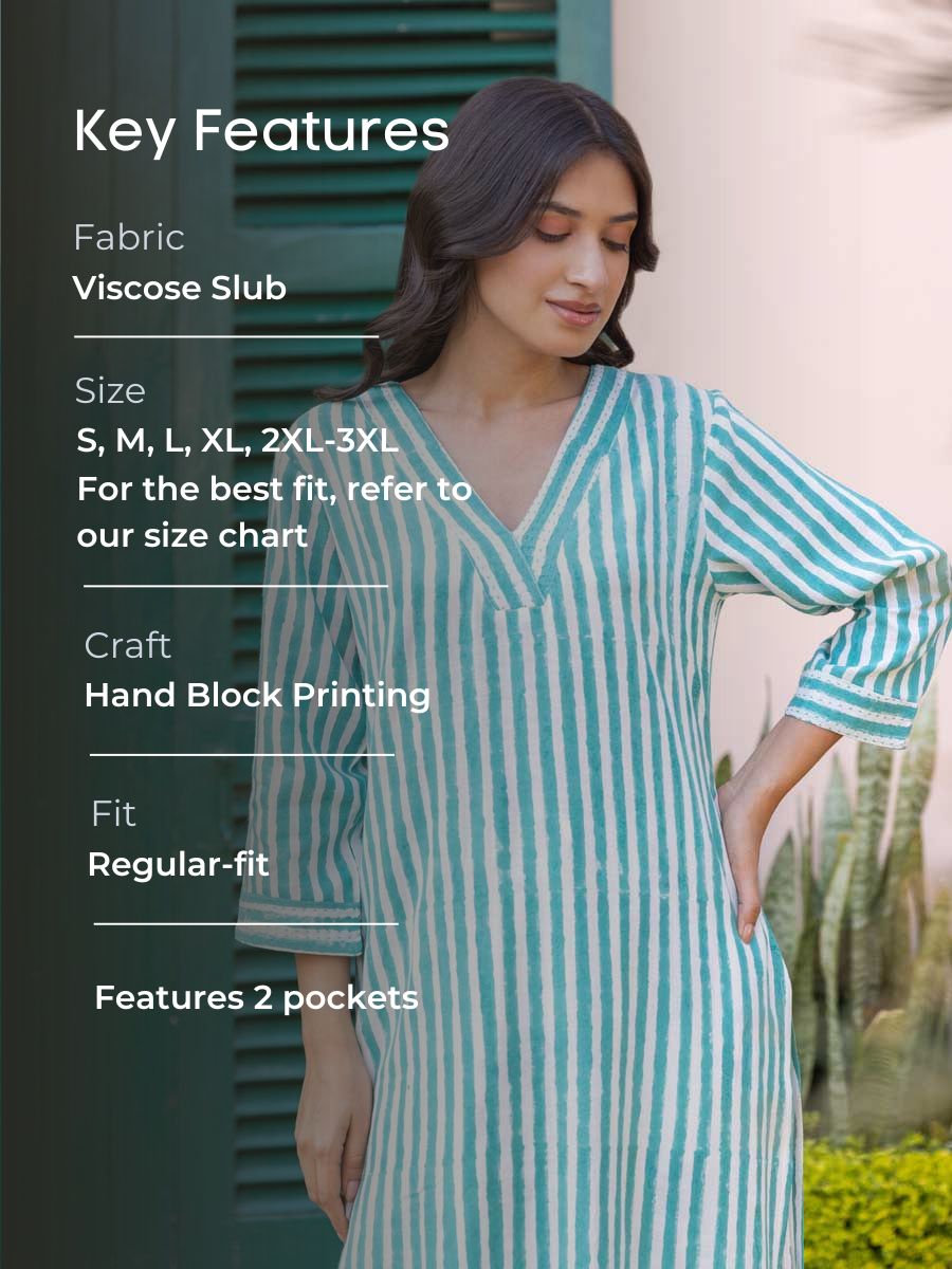 - Features: V-neckline with kanth embroidery and 2 spacious pockets