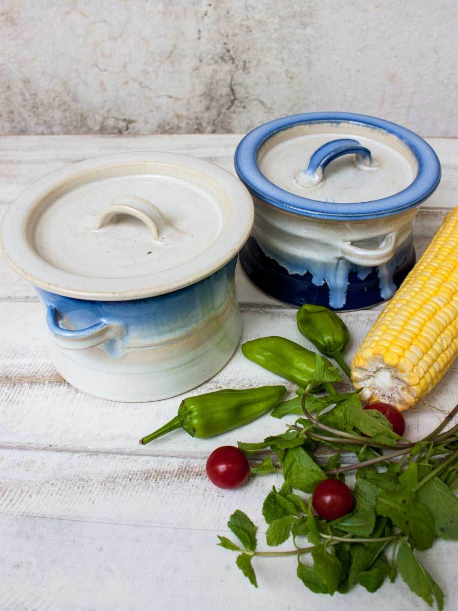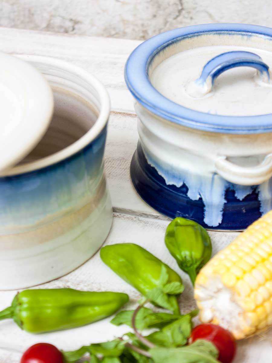 - Hand-thrown, glazed casserole