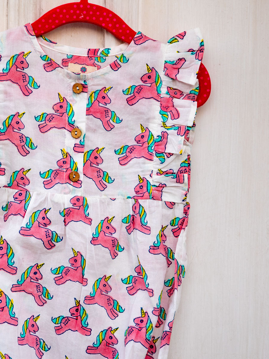 Unicorn Organic Cotton Block Printed Romper