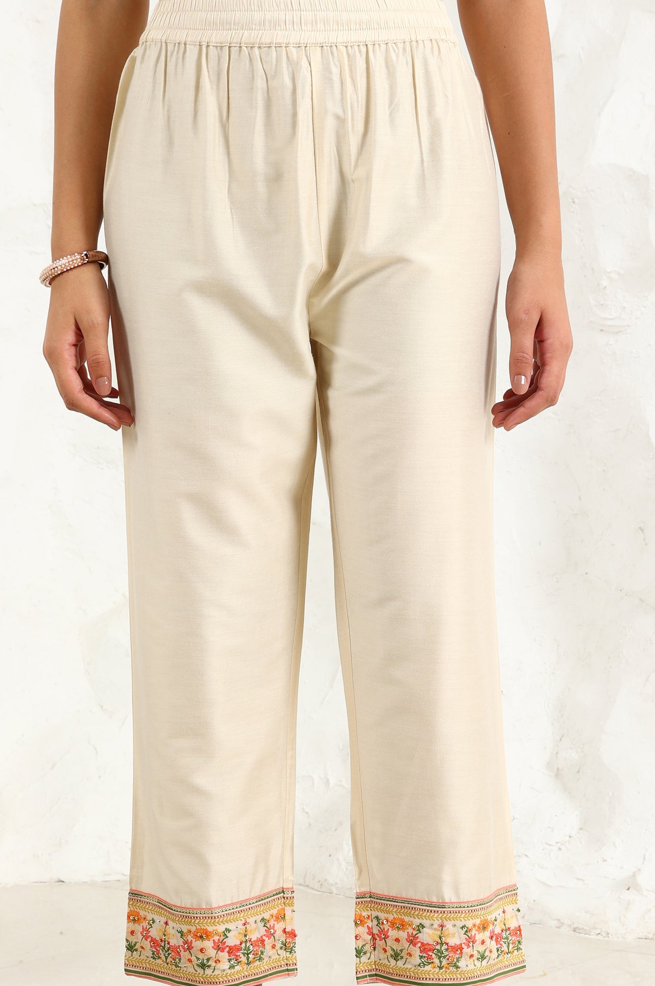 Embrace ethnic charm with this exquisite cream-colored ensemble featuring a kurta, straight pants, and dupatta. Perfect for elevated occasions, this three-piece set showcases beautiful floral prints that add a touch of femininity. The kurta boasts three-quarter sleeves and a round neckline, offering a comfortable yet stylish fit. Made from 100% man-made fiber using a woven construction technique, this polyester outfit combines durability with elegance. The flared design adds movement and grace to your look, making it an ideal choice for women who appreciate traditional aesthetics with a modern twist. Pair it with stylish sandals to complete the look, exuding effortless elegance. Versatile and timeless, this outfit is perfect for making a statement at any occasion, day or night.