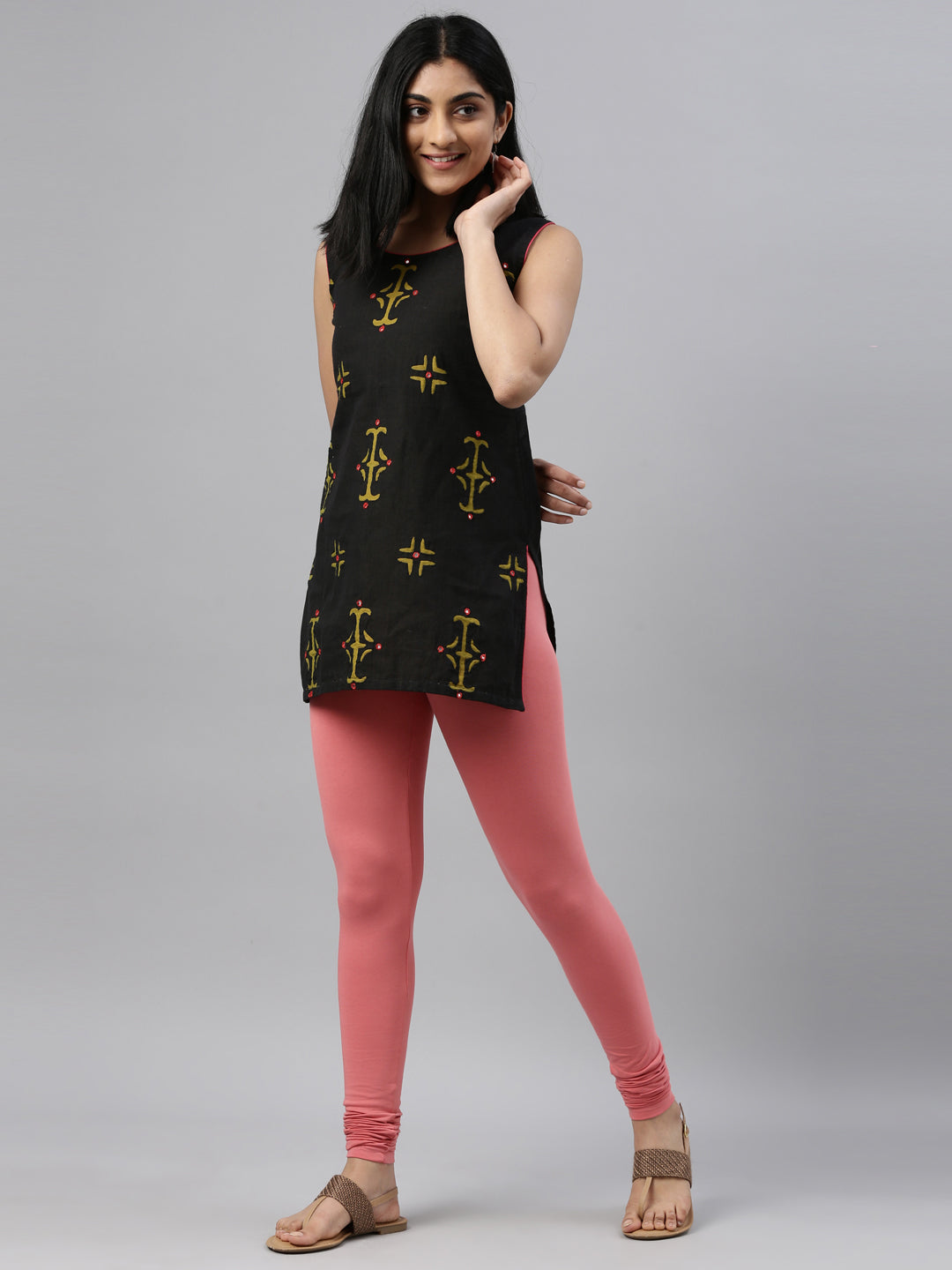 Go chic with a pair of Dusty Pink Solid Churidar Leggings. Made from high quality cotton, it has a elasticised waistband & gathers at the hemline.