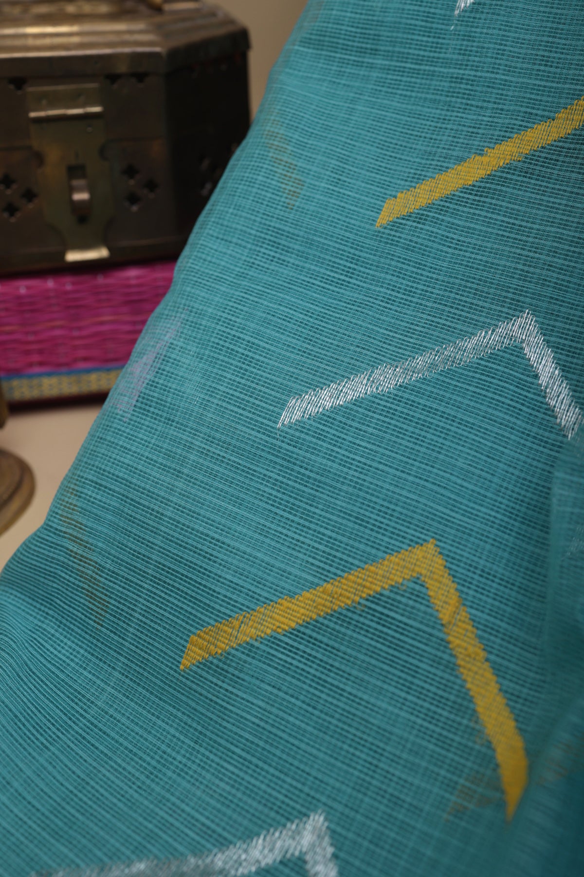 Step into the divine elegance of tradition with our Zari Kota Cotton Light Blue Saree. Adorned with delicate floral buttis and strips, it exudes a tantalizing aura. The lines edge contrast border adds opulent grace, while the brocade pallu envelops you in elegance. Paired with a blouse in contrasting hues featuring border detailing, this ensemble epitomizes classic beauty, perfect for festivals and weddings. Embrace the richness of tradition with every graceful drape.